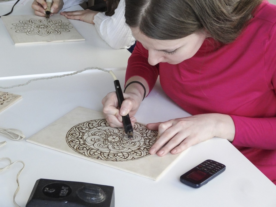 Если наскучило раскрашивать мандалу (геометрический символ, который интерпретируется как модель вселенной), то пора взяться за выжигатель.