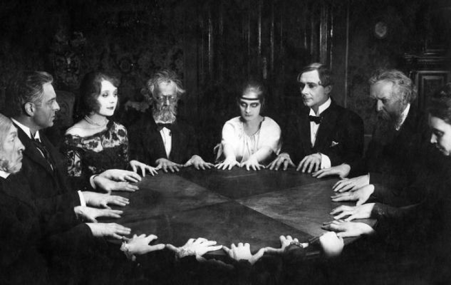 Одна из черт эпохи модерна – спиритические сеансы. В знаменитом фильме по повести Михаила Булгакова «Собачье сердце» ими занимаются жильцы дома профессора Преображенского, есть большое количество архивных фотографий и кинокадров попыток вызвать духов.