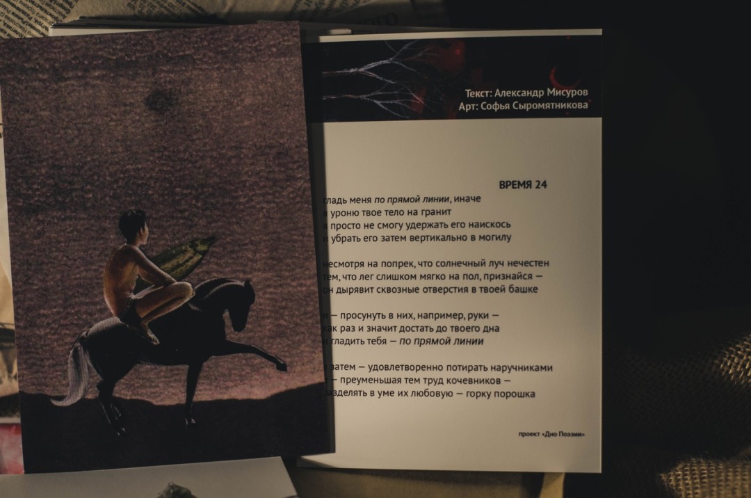 Литературу поддержит визуальное искусство: в программе арт-background от художников и выставка открыток на стихи Мисурова от Алены Будариной (Москва/Тольятти) и Софьи Сыромятниковой (Самара).