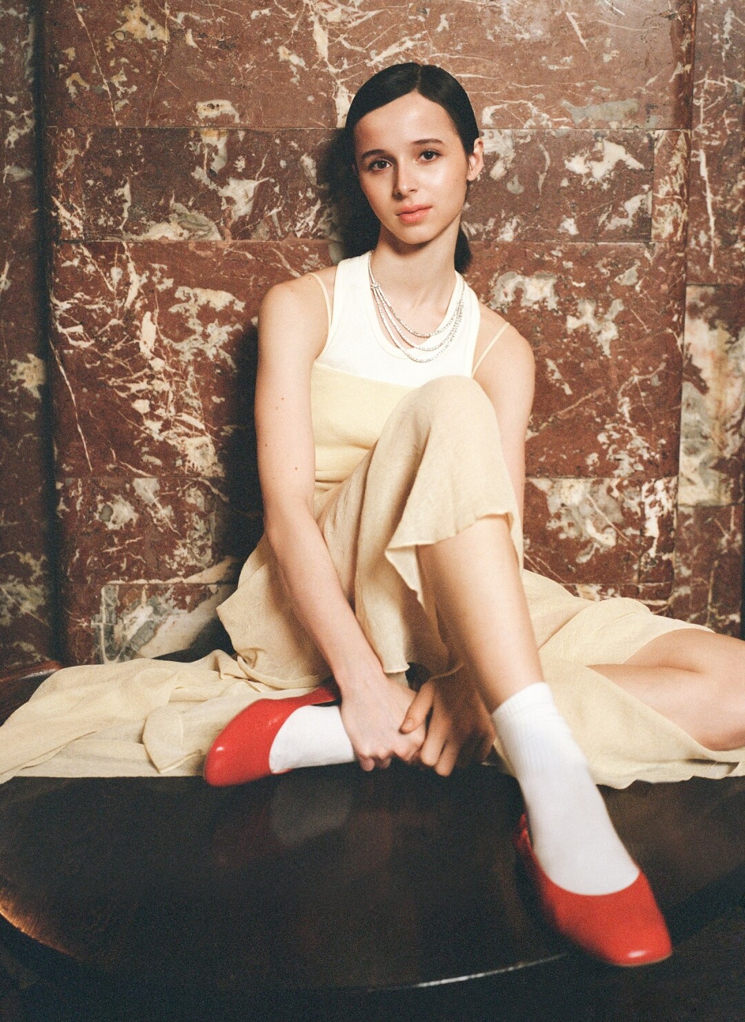 Вторая моя большая премьера сезона — актерский дебют в сериале «Балет» режиссера Евгения Сангаджиева. Невероятно, но в него я попала из-за травмы, иначе я бы не согласилась на съемки. А балеринской работы там было мало, да я и не могла ничего делать на больной ноге. Сцены с моим участием, где нужен был танец, я исполняла очень аккуратно. Но кино — такой процесс, который непонятно чем обернется. Мне, конечно, дали почитать сценарий, но он сто раз поменялся. Я бы не удивилась, если бы в итоге сериал оказался про инопланетян или историю царской России. Тем не менее я погрузилась в совершенно удивительный мир, познакомилась с актерской средой, а главное, с Аллой Михайловной Сигаловой — удивительной, талантливейшей женщиной (хореограф, режиссер, актриса и преподаватель современного танца. — Прим. ред.). Незадолго до начала съемок я провела несколько недель в Школе-студии МХАТ: совершенно сюрреалистический опыт. Я не представляла, в какой степени необходимо погружение, наблюдение за собой, за нюансами поведения. Насколько из одной микродетали можно развернуть актерский этюд или то, что можно положить в актерскую копилку. Естественно, ты учишь реплики, прежде чем приехать на съемочную площадку, но по сути репетиции идут сразу перед камерой. Это огромный прилив адреналина — с нуля выстраивать роль. И конечно, когда приходится произносить реплики перед камерой, подлаживать себя под персонажа, получается, как у Станиславского в «Работе актера над собой», — попытка прожить. Не просто сыграть, не просто сказать, но попытаться именно стать персонажем. В моей героине Руте зарождается жажда творить, создавать свою новую хореографию. Я начала смотреть лекции про современный балет, изучать техники, думать над тем, а что бы мне самой хотелось поставить и изменить в нынешнем балетном мире. Это переживание «здесь и сейчас» и погружение в контемпорари дали мне толчок в развитии, новое понимание смыслов. Мне захотелось каждый раз, когда я выхожу на сцену, чувствовать эмоциональный подъем от актерской игры, проживания роли, перевоплощения, а также больше, реалистичнее и правдивее существовать на сцене. Я стала пытаться применять этот принцип и поняла: танцевать намного легче, когда думаешь не про хореографию, а про персонажа. Даже пресловутые фуэте получаются намного лучше, если я понимаю, что сейчас ты — Китри (героиня балета Людвига Минкуса «Дон Кихот». — Прим. ред.), и это твоя свадьба.