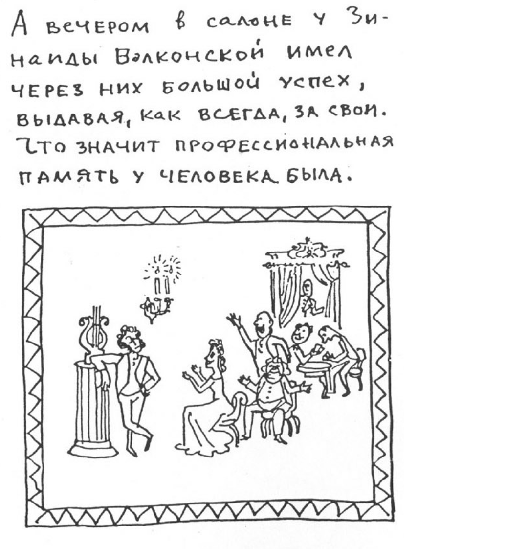 А вечером в салоне у Зинаиды Волконской имел через них большой успех, выдавая, как всегда, за свои. Что значит профессиональная память у человека была.