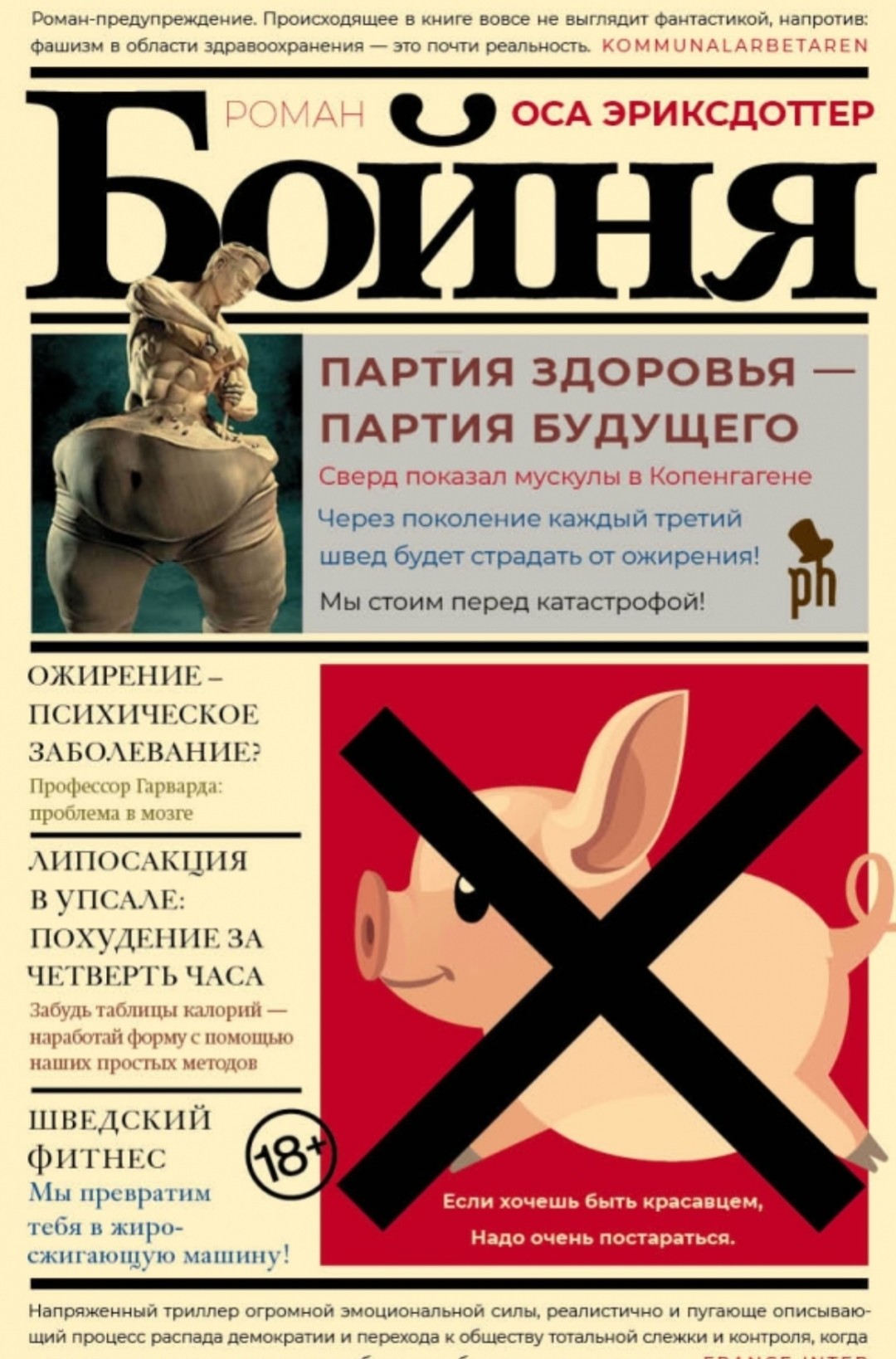 А вот книгой о которой говорят больше всего оказалась «Бойня» Осы Эриксдоттер. И правильно, такой актуальной, жестокой и злободневной антиутопии давно не было. Место действия Швеция, главные герои жители страны, которым непременно нужно похудеть, но не только при помощи диет, а еще с обязательным приемом таблеток, липосакций и бандажирования желудка. Что из этого выйдет обязательно стоит узнать.