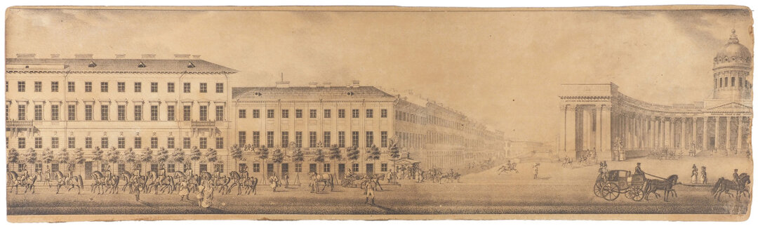 Среди других хайлайтов торгов — краеведческая диковинка — панорама правой «теневой» стороны Невского проспекта на 14 фрагментах. Первоначально панорама была выполнена акварелью бывшим крепостным художником Василием Садовниковым на большом формате — 16-метровом свитке! Только позже ее перевели на литографский камень и издали по инициативе книгоиздателя и мецената Андрея Прево. Правую сторону литографировал в 1830 году И. Иванов. Изображение охватывает маршрут второй половины 1820-х годов: от здания Кабинета Его Императорского Величества (Кваренги, Руска) до Исаакиевской площади, включая Аничковский дворец, Александринский театр, Императорскую Публичную библиотеку, Гостиный двор, Городскую думу, Казанский собор, Строгановский дворец и Полицейский мост (сегодня — Зеленый мост через Мойку). Стартовая цена — 200 тысяч рублей.