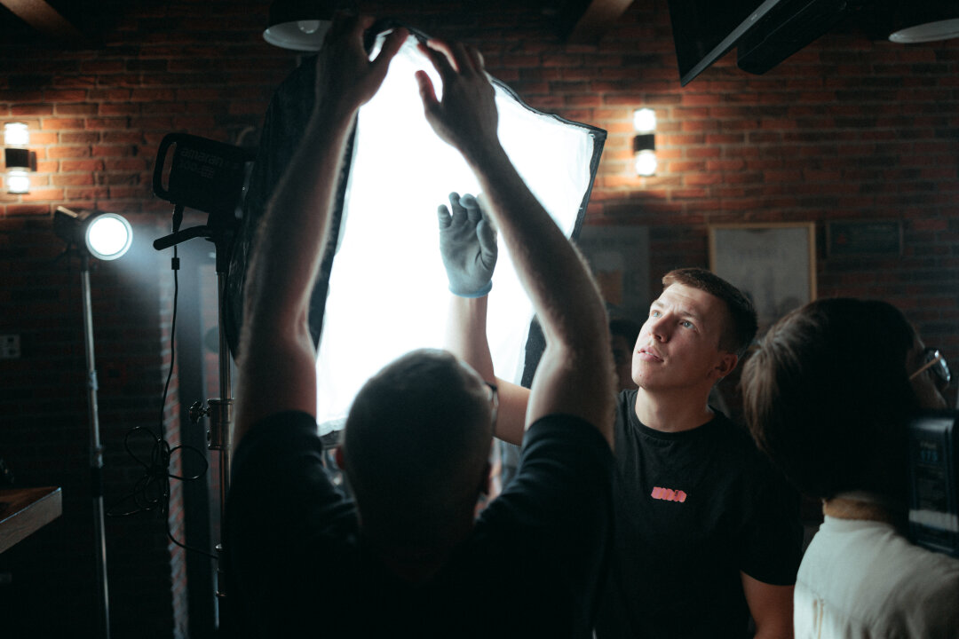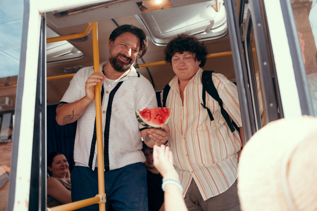 Как ответственные киношники мы не можем принуждать идти на серьезные риски ради кадра, поэтому все сложности мы телепортируем на техническую часть. Так, например, наши герои в одном из моментов фильма едут на самокате определенным образом (сейчас будет спойлер!), но мы даже не рассчитывали, что они согласятся на это. Соорудили «халабуду»: так мы прозвали наше «транспортное средство» с с техническим директором Леонидом Гуком и оператором-постановщиком Славой Астафьевым. Под конструкцией вращается камера на триста шестьдесят градусов – сами герои сидят на прицепе, а он буксируется большой машиной. Так создается ощущение, что персонажи едут на самокате! Без вреда для здоровья, зато на удивление всем прохожим.