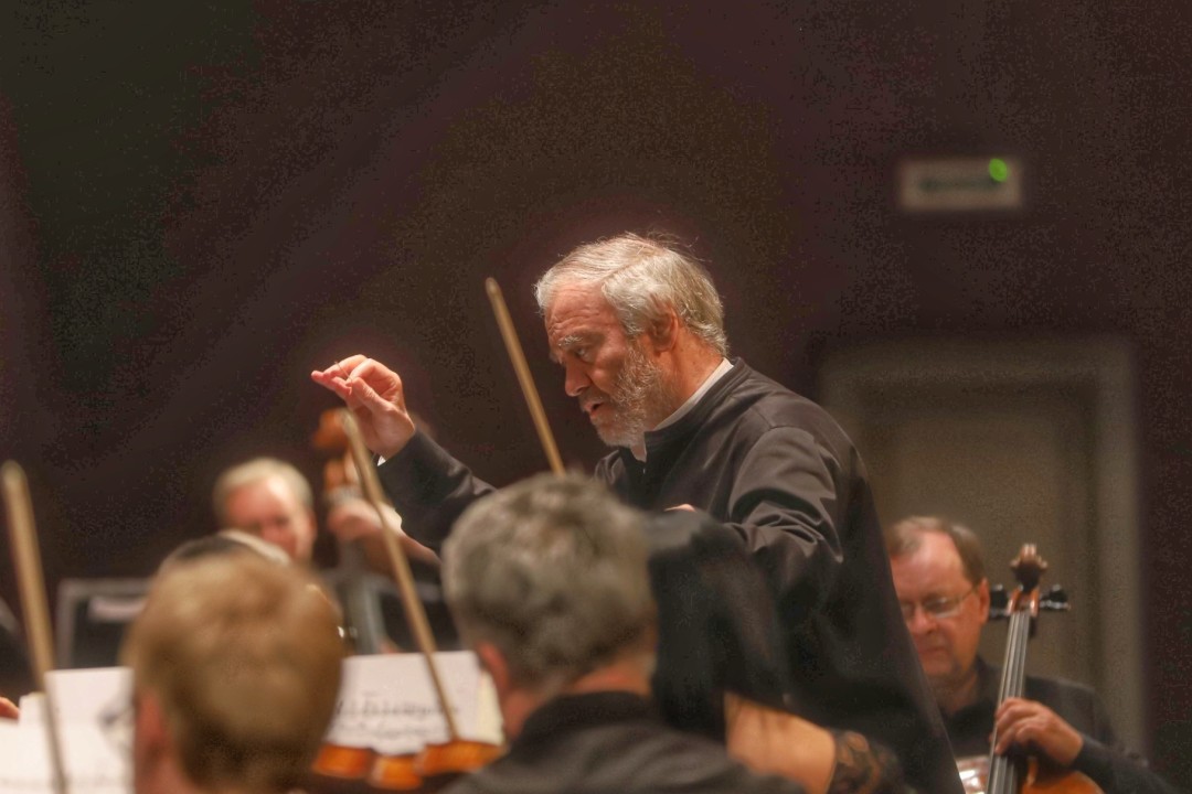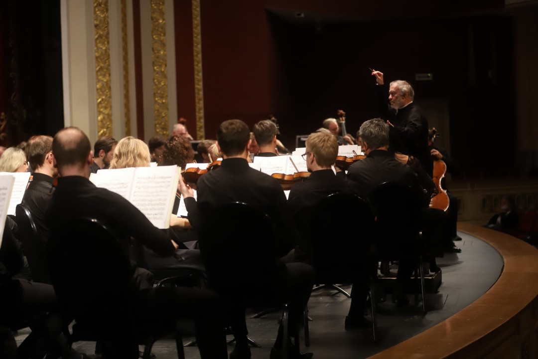 В первом концерте были исполнены следующие произведения: Морис Равель «Павана усопшей инфанте» (1899), Антон Брукнер адажио из Симфонии №8 до минор (1887/1890), Клод Дебюсси «Море», три симфонических эскиза (1903–1905): «На море от зари до полудня», «Игра волн», «Диалог ветра с морем»; Дмитрий Шостакович «Симфония № 9 ми-бемоль мажор» (1945).