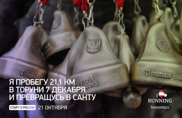 Кроме того, с 21 октября I love running начинает новый учебный курс, посвященный тому, как бегать правильно и как за семь недель добежать до Польши. То есть до полумарафона, который состоится 7 декабря в городке Торунь. Как насчет пробежать 21,1 километр в костюме Санты по старой Европе бок о бок с пятью тысячами таких же фанатов бега и получить медаль? Challenge accepted?