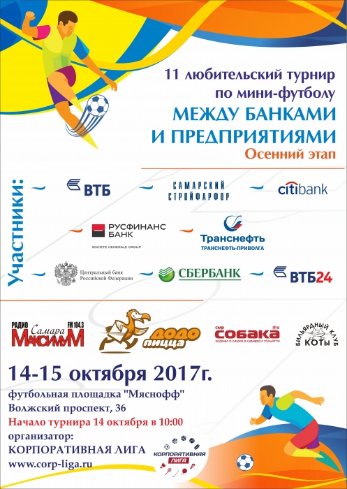 Завершаются квалификационные матчи к чемпионату мира по футболу и объявлены претенденты на «Золотой мяч». Футбол нужен всем. Поэтому 14 и 15 октября пройдет одиннадцатый любительский турнир по мини-футболу среди сотрудников банков и предприятий г. Самары и Самарской области.
