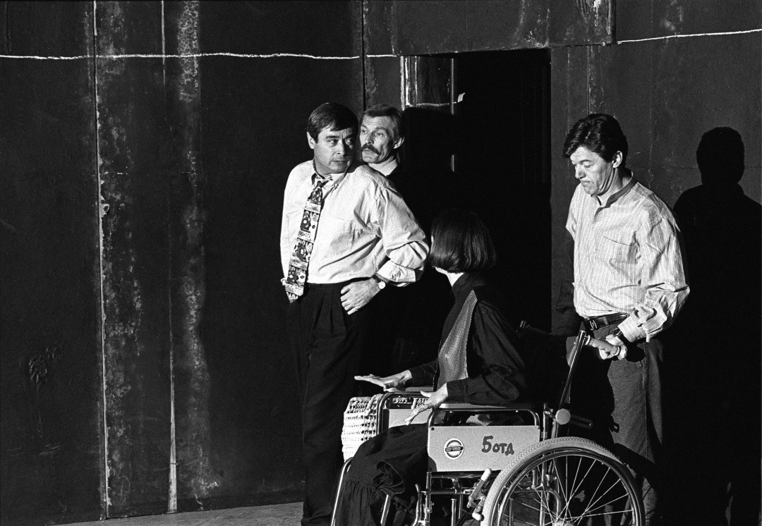 Валерий Фокин с Сергеем Сазонтьевым, Ириной Купченко и Александром Збруевым на репетиции спектакля "Последняя ночь последнего царя", фото