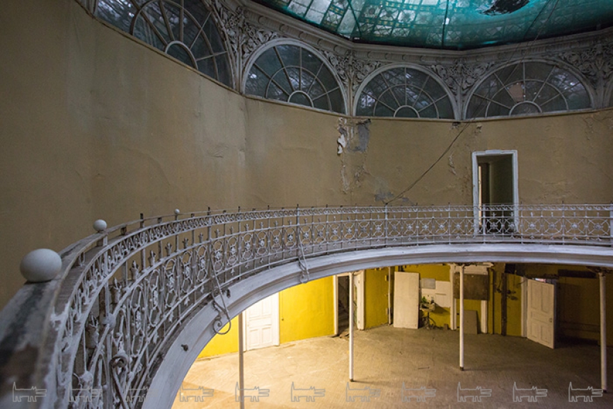 МЕСТО СЪЕМКИ: Русский для внешней торговли банк Архитектор Вик тор Шретер облицевал фасад банка вюртем бергским песчаником, а операционный зал впервые в России ре шил с использованием новаторских для того времени инженерных конструкций: двухуров невый и круглый по форме, он перекрыт стеклянным куполом с витражными секциями, фермы которого опира ются на металлические колонны. Здание, из которого несколько лет назад выехал Торговоэкономический техни кум, требует серьезной реставрации. |
