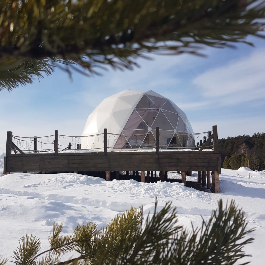 Ближе к городу, но подальше от суеты и проблем – глэмпинг «Побег из города». Посмотреть фильм на проекторе, затестить баню и джакузи с панорамным окном, приготовить мясо на гриле и закрыть целый чек-лист с зимними активностями – от снегоходов и квадроциклов до менее экстремальных лыж – звучит, как план на предстоящие выходные.