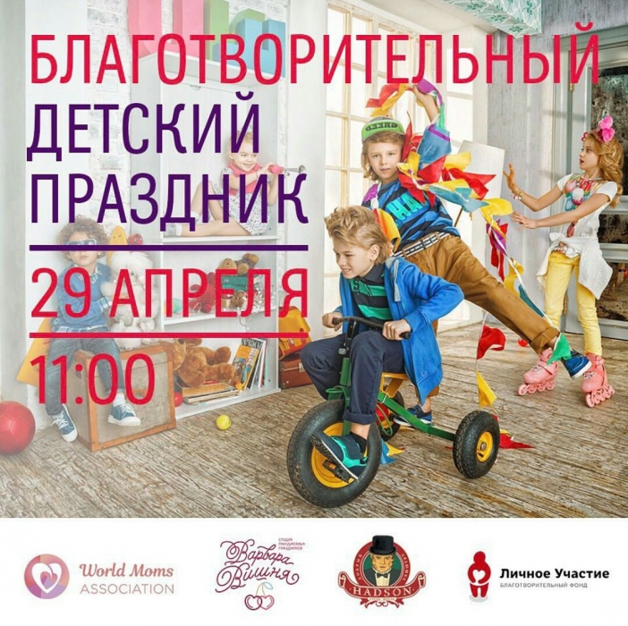 29 апреля в 11-00 в ресторане Mr.Hadson пройдет детский благотворительный праздник. Активное участие примут: Студия Грандиозных Праздников Варвары Вишни