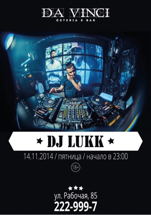 Как всегда только качественная музыка и великолепный ди-джей будет в пятницу 14 ноября в баре DA VINCI" и имя ему Lukk.