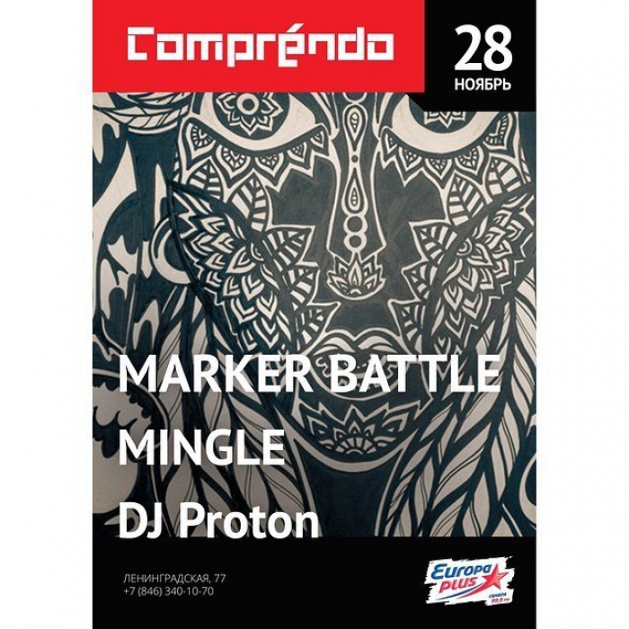 В эту Пятницу в 20.00 Marker battle с Mingle! Вход СВОБОДНЫЙ! Приглашаем в новый актуальный бар COMPRENDO окунутся в атмосферу живого творческого процесса. Художники на ваших глазах будут создавать рисунки посредством маркеров и своих умений. Не сомневайтесь - волна вдохновения накроет всех и каждого!