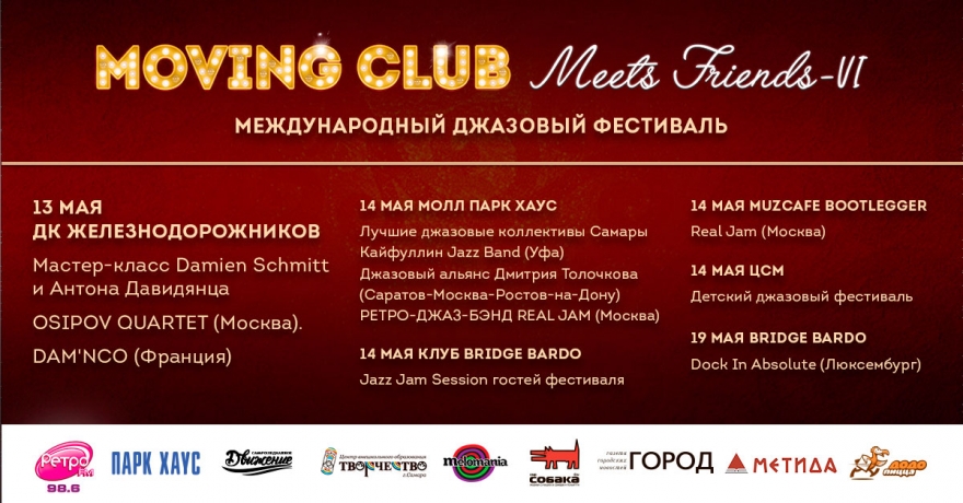 Какая музыка лучше всего подойдет маю? Скорее всего, джаз. Поэтому самарское джазовое «Движение» представляет международный джазовый фестиваль Moving Club Meets Friends — 2017, который продлится с 13 по 19 мая.
