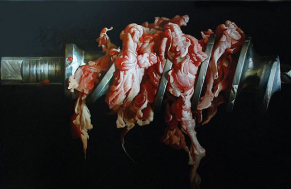 21 февраля в галерее Марины Гисич откроется выставка Игоря Пестова «Нежность», «шесть сцен из жизни мяса». Натуралистическая живопись художника-гиперреалиста, яркие картины с избражениями фарша в мясорубке, освежованной коровьей головы и так далее, — странный и провокационный извод поп-арта, морально неоднозначное продолжение сатирического проекта «Цивилизация потребления», за который Пестов был номинирован на арт-премию Кандинского.