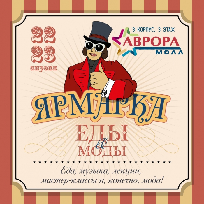 Праздник вкуса и стиля – в «Аврора Молл» пройдет Ярмарка еды и моды. Фестиваль продлится с 22 по 23 апреля с полудня и до восьми вечера.