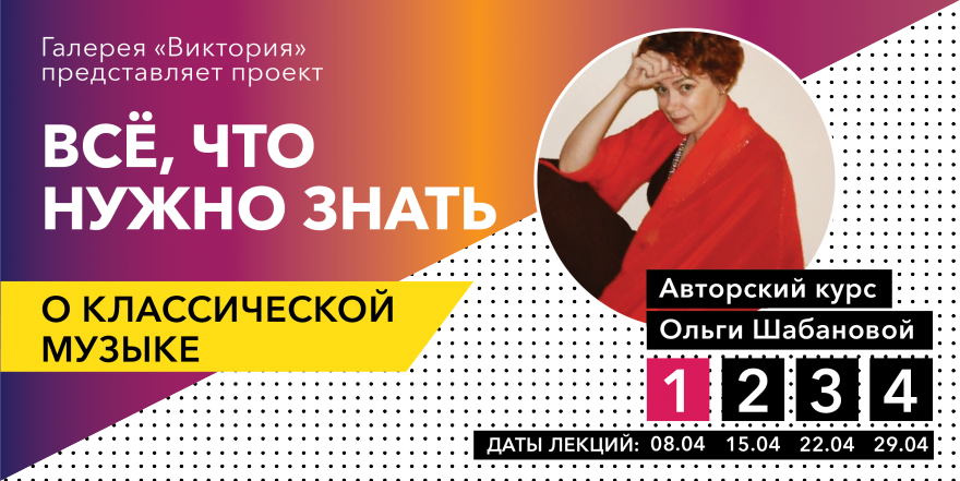 Галерея «Виктория» напоминает нам, что слушать классическую музыку – всегда модно. И не только слушать, но и узнавать о ней. Поэтому в апреле – целый курс лекций и концерты.