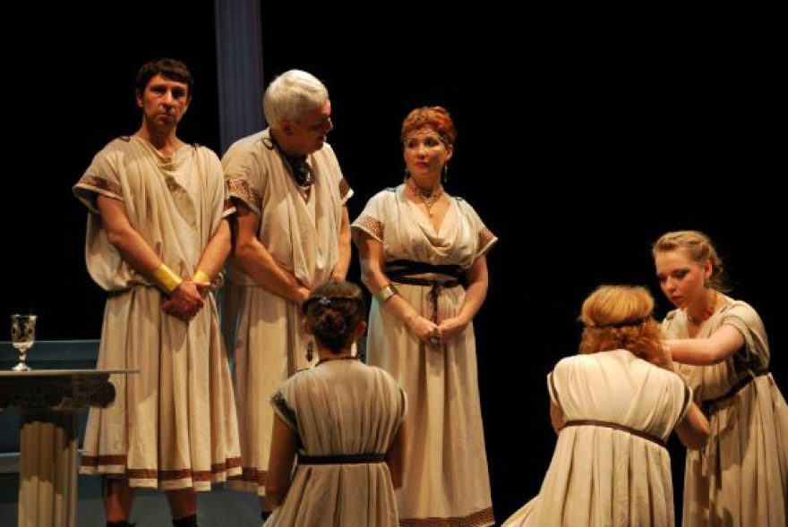 На сцене разворачивается жесткая борьба темной стороны человечества с Богами и законом.