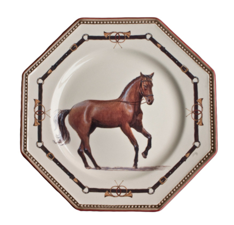 шлемами, упряжью и фигурами чистокровных рысаков, а тарелки сделаны в виде восьмиугольников.