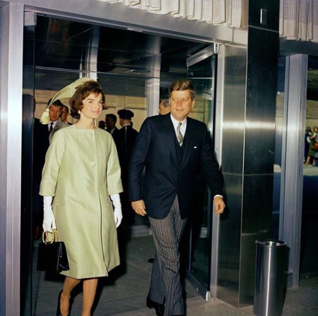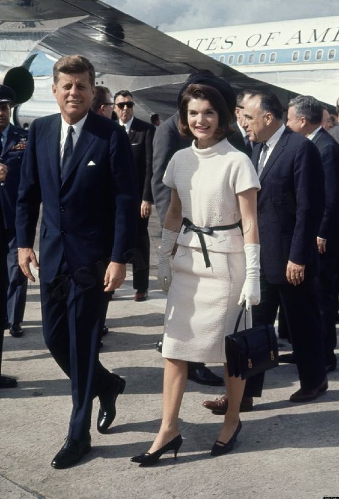 К самым известным элементам образа Жаклин времен ее брака с Джоном Кеннеди относятся платья-трапеции, воротники-стойки, открытые плечи, туфли на невысоком каблуке, перчатки, жакеты и рукава три четверти. За стиль Джеки того периода отвечал дизайнер Олег Кассини. Благодаря его работе образы некогда первой леди признаны образцом элегантности, появилось (ставшее уже шаблонным) словосочетание «стиль Джеки», а многие из ее нарядов цитируются и сейчас действующими первыми леди (речь, конечно, о Мелании Трамп). До того, как стать дизайнером Жаклин Кеннеди, Кассини трудился в Голливуде, был художником по костюмам и одевал Аву Гарднер, Кэтрин Хепберн, Мэрилин Монро и Джуди Гарланд.