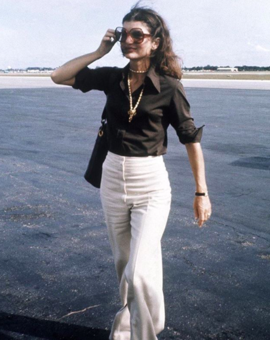 После 1963 года Джеки О больше не нужно было транслировать образ, соответствующий высокому статусу, но она осталась приверженцем элегантности. Правда теперь в ее нарядах появилась расслабленность, в них стали прослеживать отголоски стиля бохо. Джеки делала выбор в пользу черного цвета, пробовала принты, закрывала лицо массивными солнечными очками. На смену костюмам-двойкам пришли свободные брюки и брюки-клеш, пиджаки и мини Yves Saint Laurent. Она стала смелее и раскованнее, неизменным осталась любовь к платьям без рукавов. Так Жаклин Кеннеди удалось не только получить звание фэшн-иконы, но и сформировать узнаваемый и цитируемый образ даже среди далеких от моды людей.