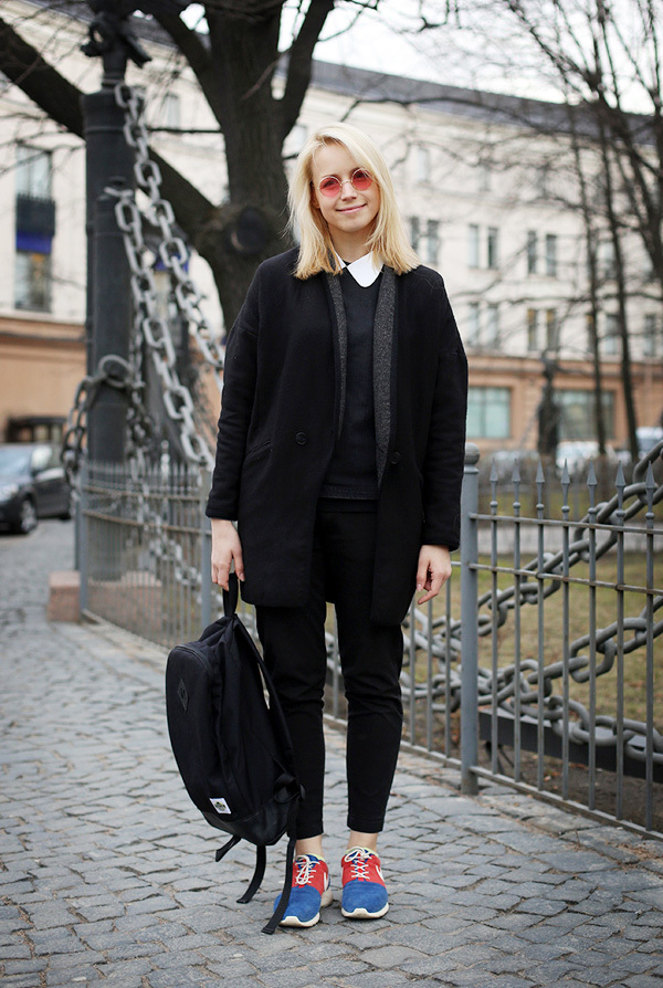 На Шуре: кроссовки Nike, кофта Gosh, пальто Topshop, просто штаны и очки.