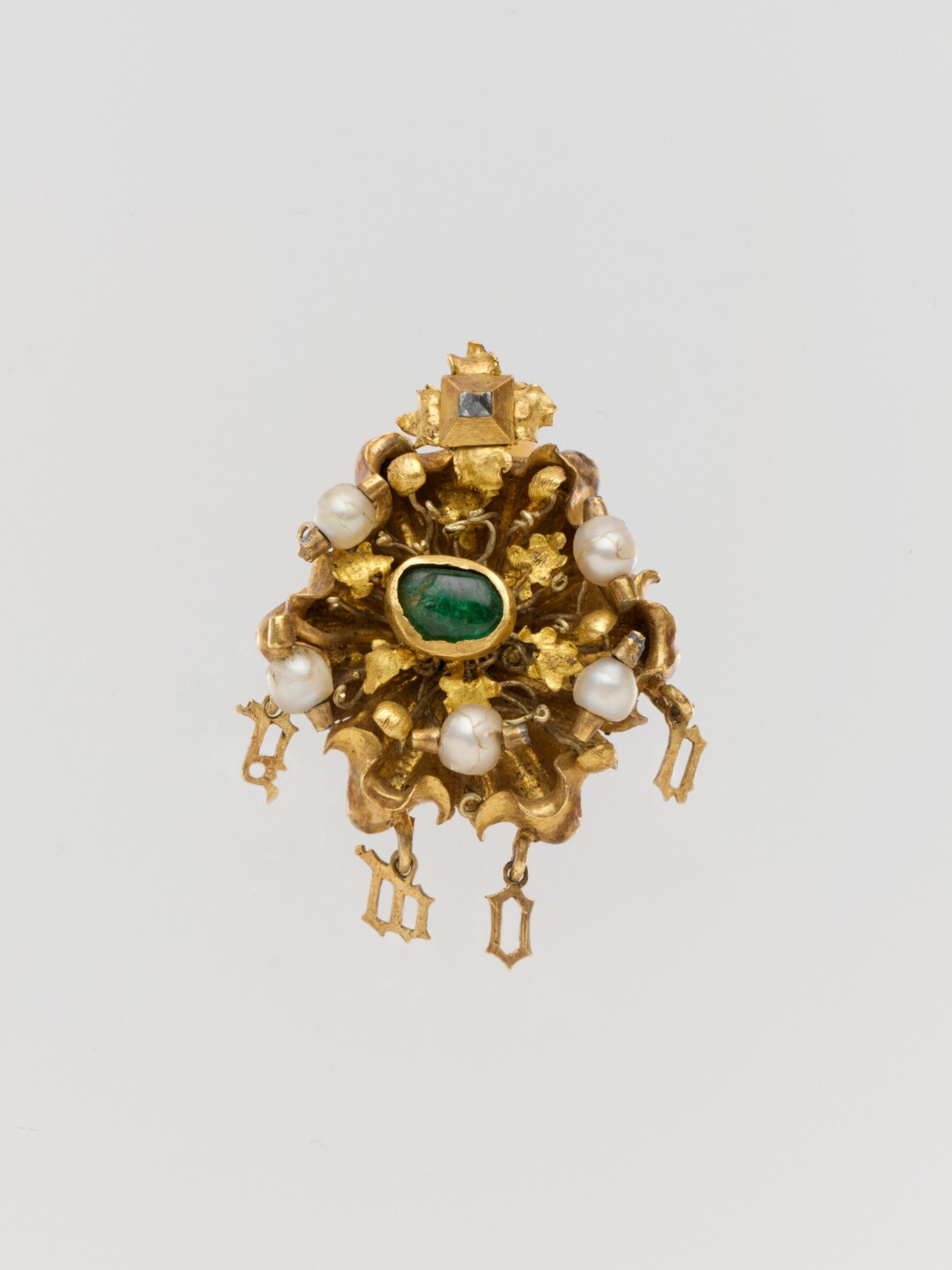 Брошь с подвесками-буквами, образующими слово «Amor» — любовь, середина XV в., Метрополитен-музей, Нью-Йорк. Такое украшение носили и на одежде, и в волосах
