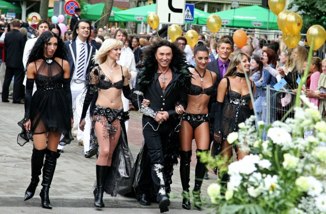После перестройки обществу хотелось фирменного и дизайнерского, и Валерий, который и так никогда не был слишком «советским», стал ретранслятором мировой моды. Он первым стал появляться на сцене в костюмах от Джорджо Армани, Роберто Кавалли, Джона Гальяно и Жана Поля Готье. Кроме того, Валерия можно назвать пионером мужского стайлинга: он собирал сложные луки, дорабатывал их на свой вкус и устраивал фотосессии. Готовыми образами Леонтьев был не всегда доволен, поэтому брал на гастроли швейную машинку и собственноручно переделывал эстрадный костюм, добавляя приемы деконструкции, кастомайзинга и декорирования. Случись все это сегодня, Леонтьев наверняка бы выпустил коллаборацию с модным брендом по примеру Рианны и Канье Уэста, но тогда крупных фэшн-игроков на российском рынке попросту не было.