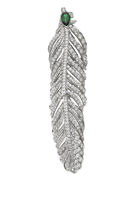 Кафф из белого золота оплетает запястье паутиной с застрявшими в ней бриллиантовыми росинками.