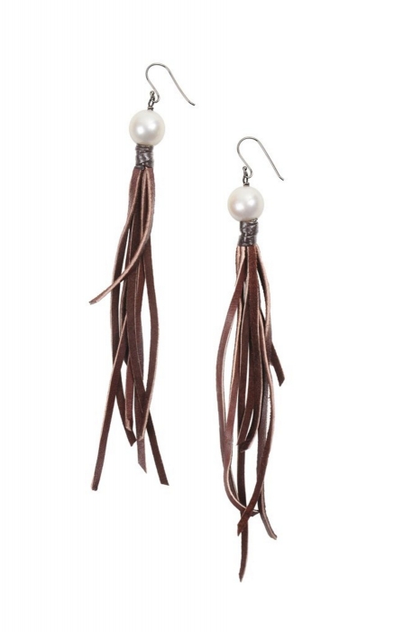 Кисточки из оленьей кожи, серебряное «стремя» и две пресноводные таитянские жемчужины — такая парадная сбруя досталась сережкам от нэшвиллского ювелира.