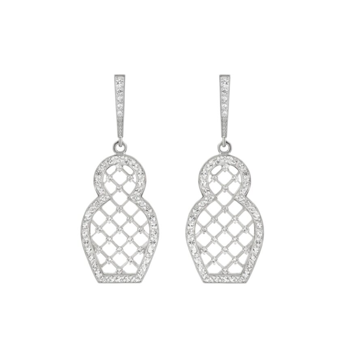 Каждая матрешка носит в себе не другую куклу, а игрушки повеселее — 18 бесцветных топазов на скрещенных нитках стерлингового серебра.
