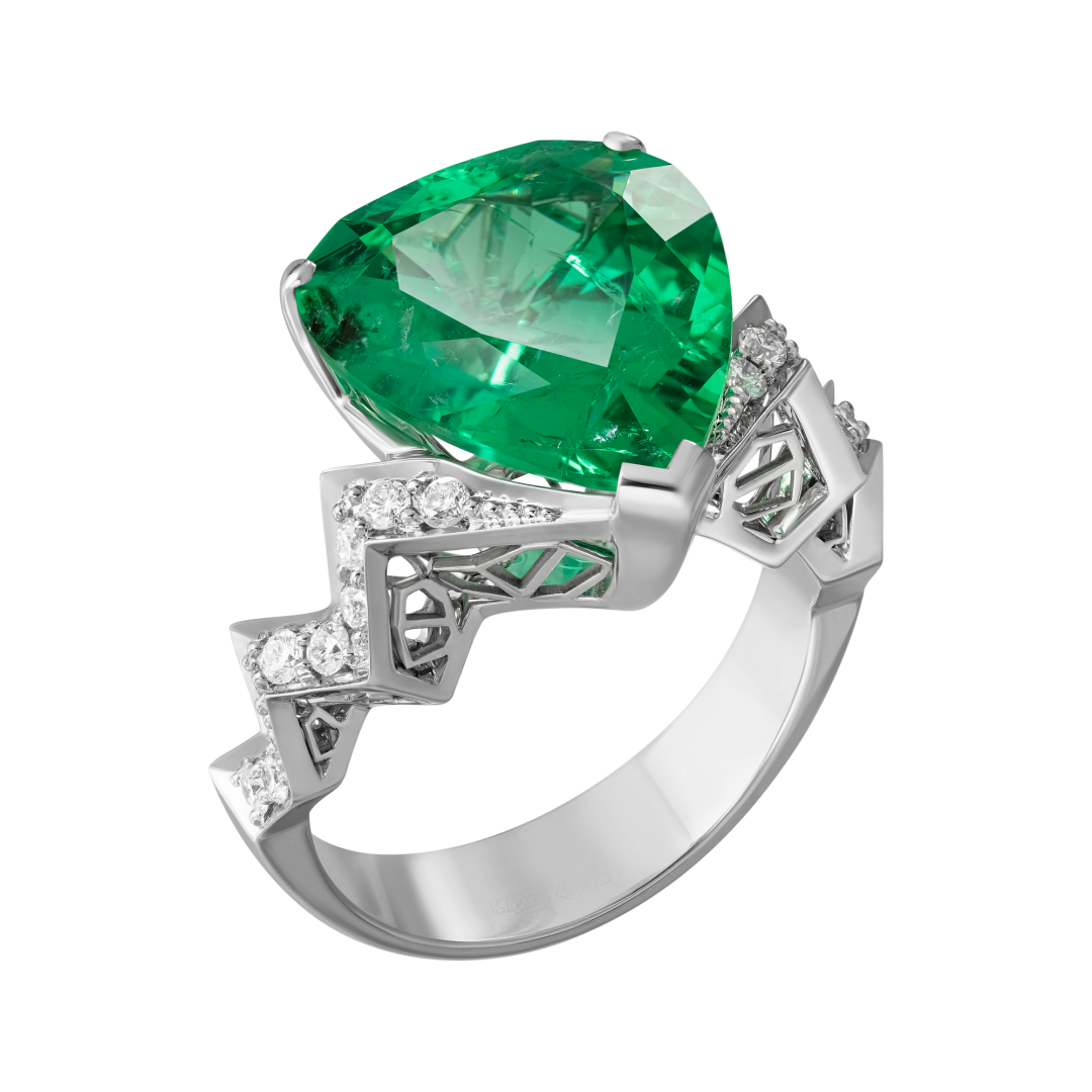 Воспеть любовь в своем искусстве вслед за Робертом Индианой и Джеффом Кунсом отважился Максим Демидов. Для этого он выбрал изумруд в форме сердца весом в 7,46 карата и представил его в супрематической оправе.