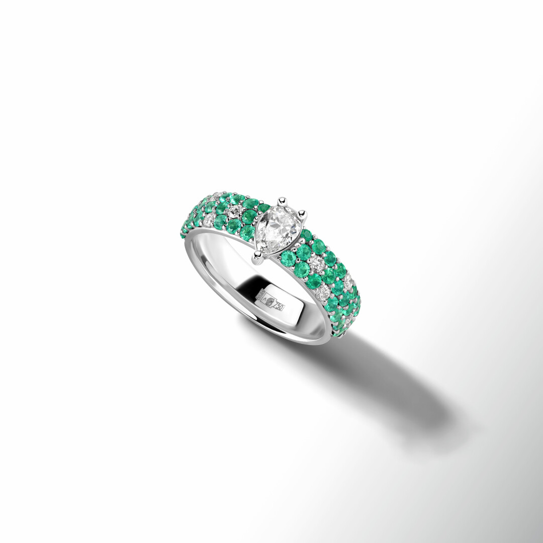 Особенностью бренда всегда были исключительные по своим характеристикам драгоценные камни, которые разыскивают буквально по всему свету. В этой коллекции невозможно не залюбоваться совершенными бриллиантами грушевидной огранки, пылающими замбийскими изумрудами и изысканными сапфирами. Особое место занимает бирманская шпинель – грозовая, ягодная, пыльно-розовая – в золотых оправах она раскрывает богатый цветовой диапазон и сверкает особенно ярко. Аметисты огранки «кабошон», нежно-голубые топазы и турмалины Параиба блистают в роскошных колье и кольцах.