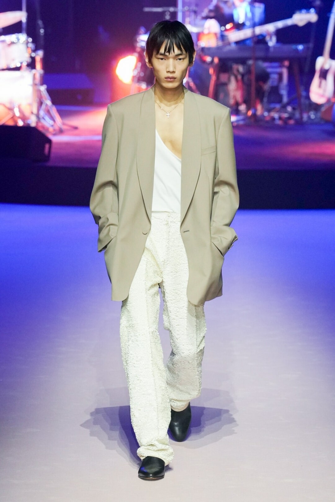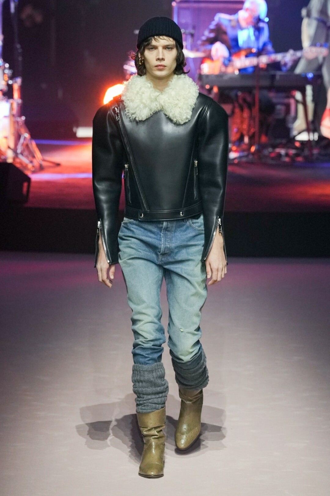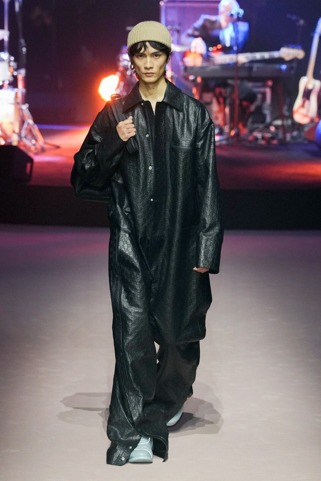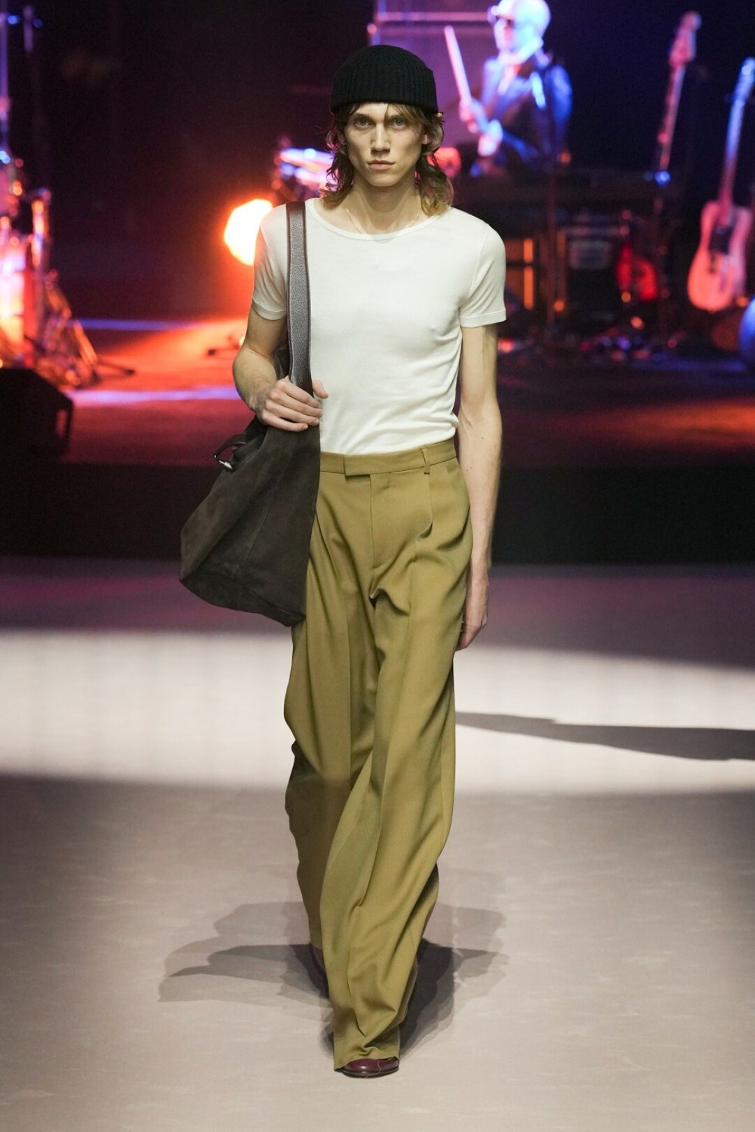 Мужчина больше не уйдет из Gucci весь в кружевах и пайетках, теперь его удел – стальные бомберы без затей и пиджаки оверсайз нейтральных оттенков. А также брюки, джинсы и белые майки: а вдруг он не слышал про масс-маркет. Последний неловкий привет от Алессандро шлют опростившиеся шифоновые блузы, лаковые брюки (с пикантными розовыми сапожками) и разноцветные мото-штаны (в бабушкиных гетрах). И вот мы снова в той точке, в которой в Gucci ходят разве что за сумками (выкинули леопардовые!).