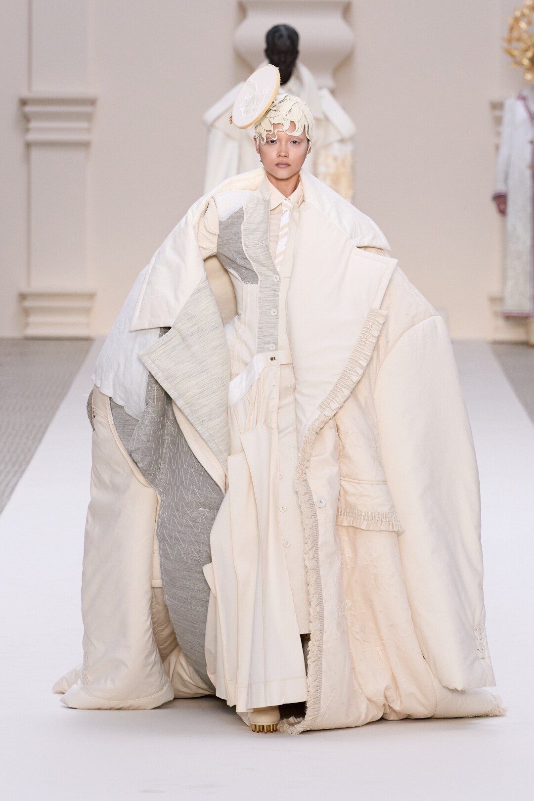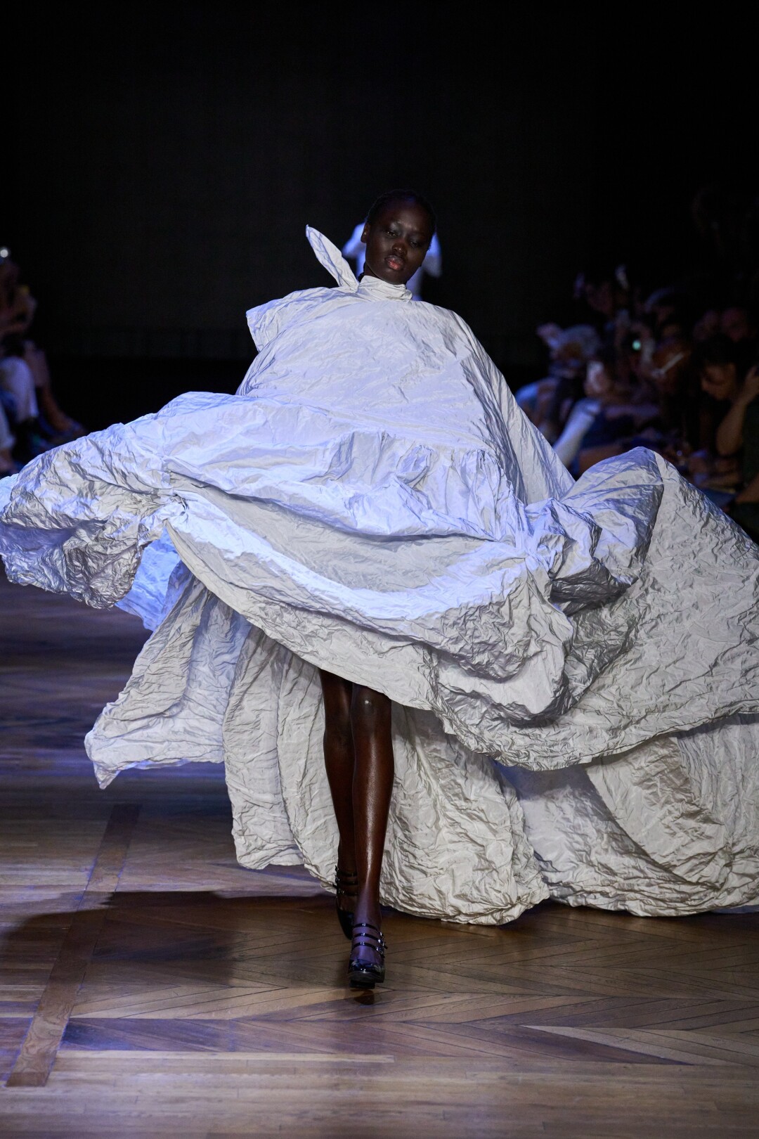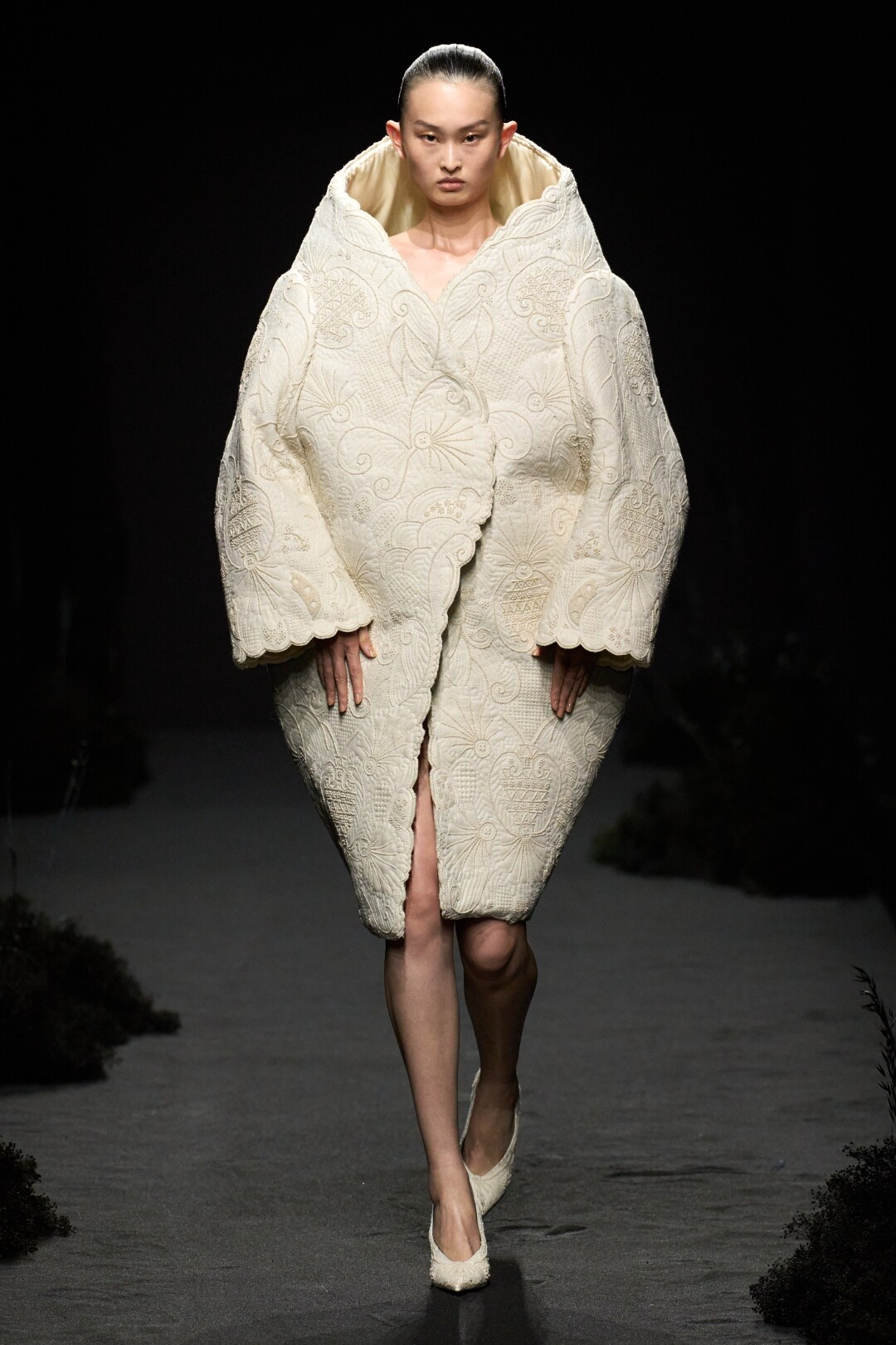 Кутюрье выкручивают многослойность на максимум и одевают нас в коконы: например, в многослойные жакеты-одеяла Thom Browne и наряды привидений Шарля де Вильморена, плотно сковывающие руки вокруг тела. А черное платье-кокон Balenciaga напоминает нам то ли рой мыслей в два часа ночи, то ли мусорный мешок. Впрочем, за пределами высокомодного подиума вполне представляем себе гиперобъемные тренчи Ashi Studio, украшенные витиеватой вышивкой (по совету Мохаммеда Аши носим со свиферами — самыми модными туфлями 2024 года!).