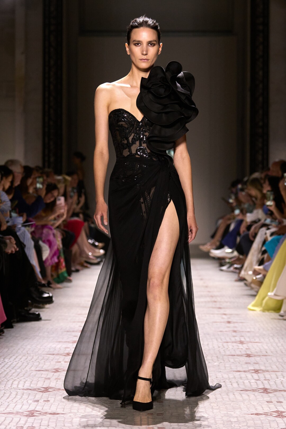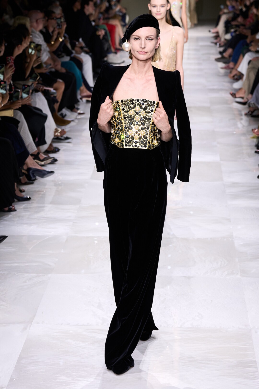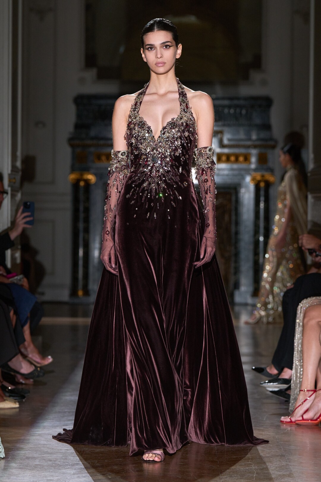 Бархат — важный тренд круизных коллекций (заверен тюдоровским шоу Christian Dior), перекочевавший на высококутюрный подиум. Нарядный мастхэв — черное платье в пол (как у Демны, Алекси Мабийя и маэстро Армани), которое при желании можно укоротить до мини-длины (как у Zuhair Murad), раскрасить в пестрые оттенки (как у Robert Wun и Elie Saab), а то и вовсе превратить в приталенный брючный костюм (как у Chanel).