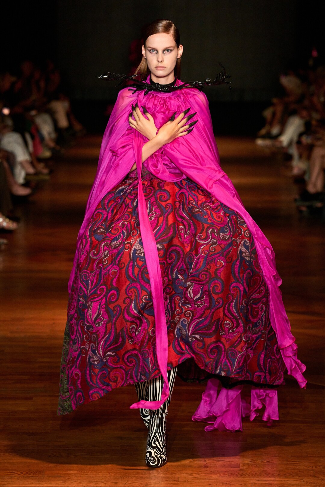 Кейп — важный кутюрный хэдлайнер: Джамбаттиста Валли украшает накидку фирменными цветочными принтами, Рахуль Мишра с помощью кейпа отрабатывает глобальный тренд на полупрозрачные вещи, дизайн-команда Chanel цитирует викторианские фэшн-коды, а Мария Грация Кьюри в преддверии старта Олимпийских игр наделяет кейп античным греко-латинским звучанием.