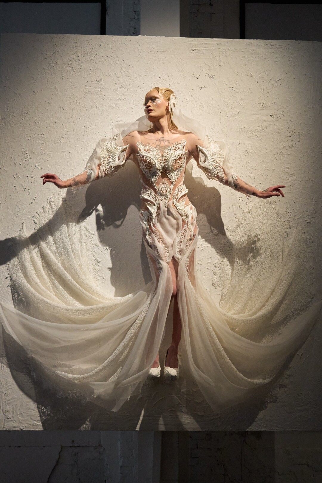 Помимо Энтони Ваккарелло в коллекции Pre-Fall Saint Laurent, cложносочиненное кружево приручили кутюрье из Парижского Синдиката Высокой моды. Мохаммед Аши в Ashi Studio одел Вику Евсееву в витиеватое тюлевое бра, Айрис Ван Херпен украсила ажурной вышивкой летящие подолы платьев, а Николя ди Феличе в роли приглашенного дизайнера Jean Paul Gaultier переосмыслил фирменные корсеты модного дома, дополнив их кружевными вуалевыми топами.
