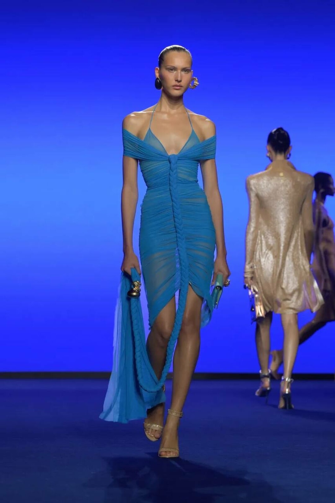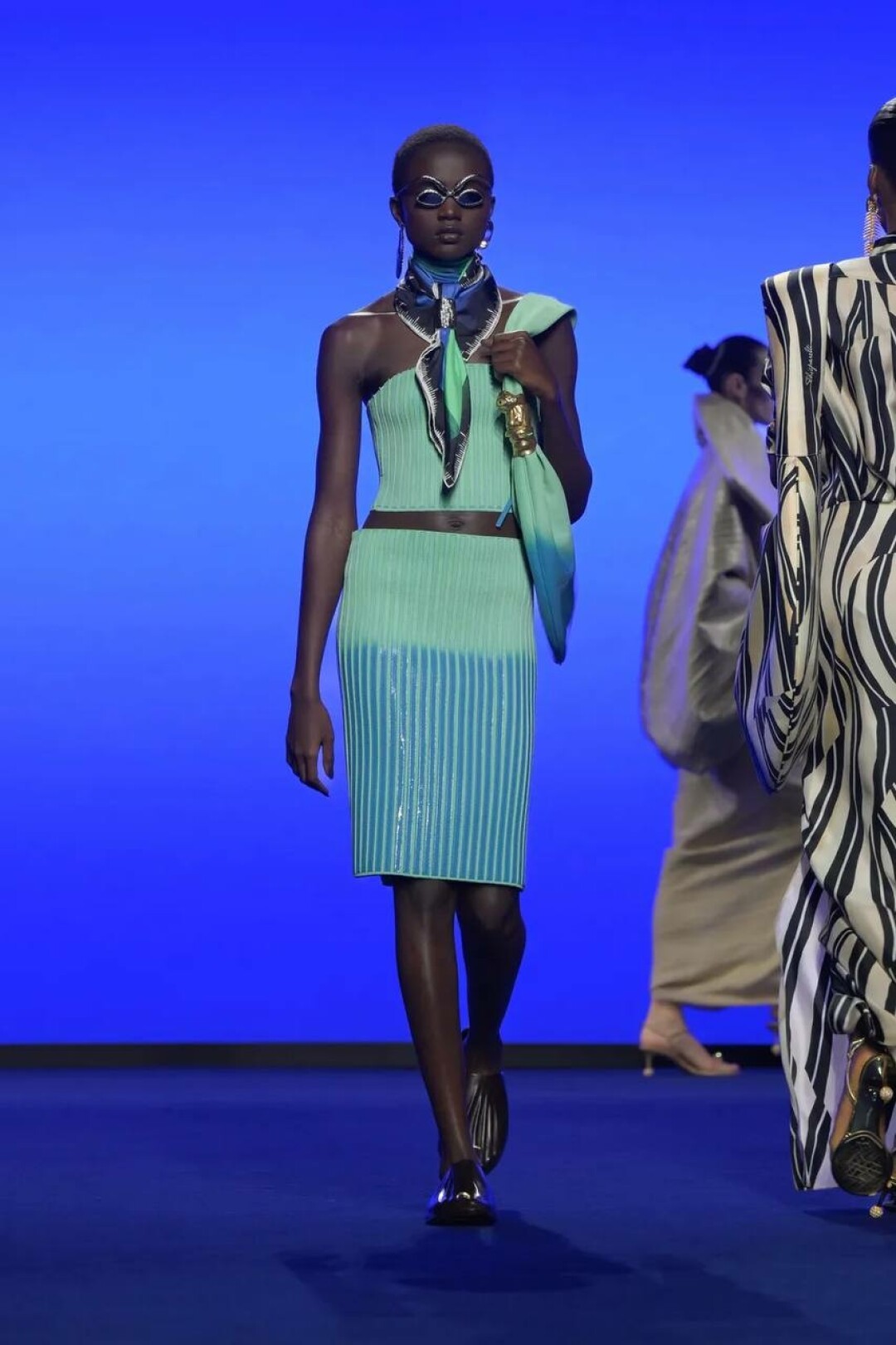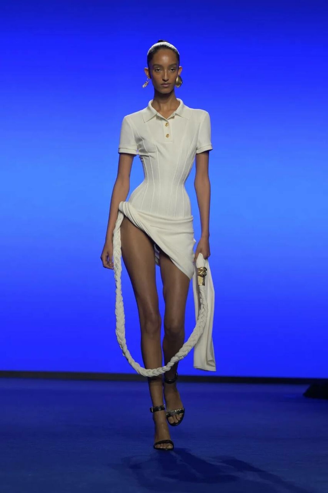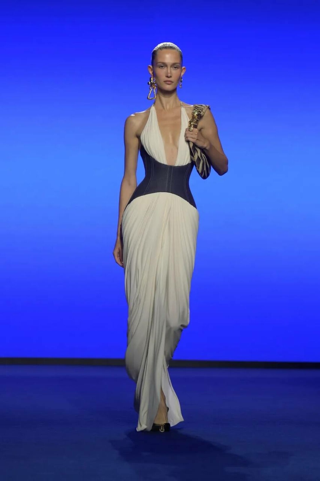 Дэниел Розберри поженил сюрреализм Эльзы Скиапарелли и вайбы Y3K — получилась футуристичная версия Schiaparelli для винтажек будущего (читай: для сценических луков Руби Рода из «Пятого элемента»!).