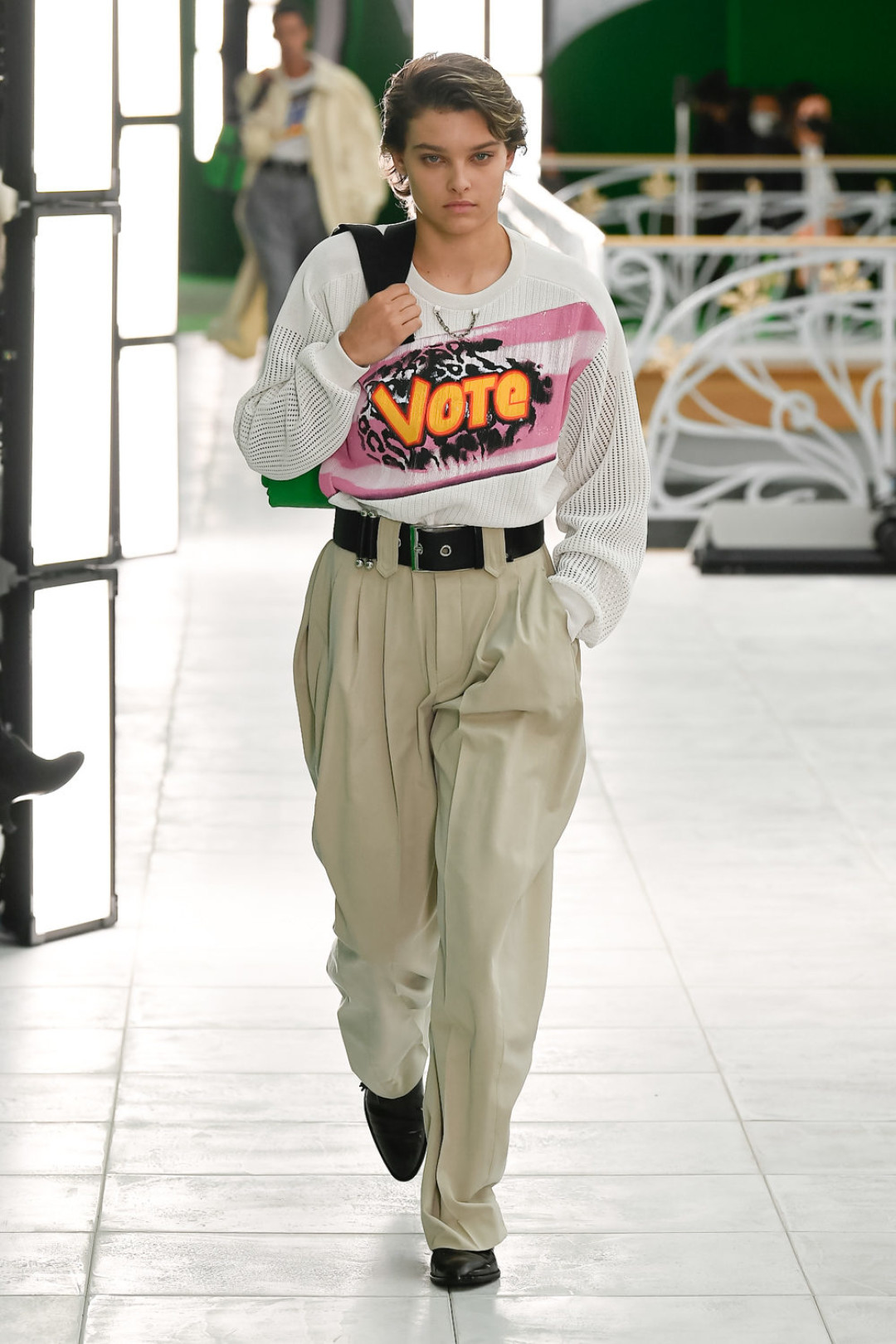 Абсолютный тренд — от линии завышенной талии до окончания длины брючины. Брюки максимально свободного силуэта представили Stella McCartney, Louis Vuitton, Jil Sander, Chanel, Nina Ricci, Victoria Beckham, Chloé, Loewe, The Row, Balenciaga. В выборе цветов и фактур мы неограниченны, да и вообще можно смело запасаться несколькими вариантами свободных брюк. Например, артистическими, как у Loewe, кожаными, как у Jil Sander, джинсовыми, как у Chanel, и минималистичными, как у The Row.