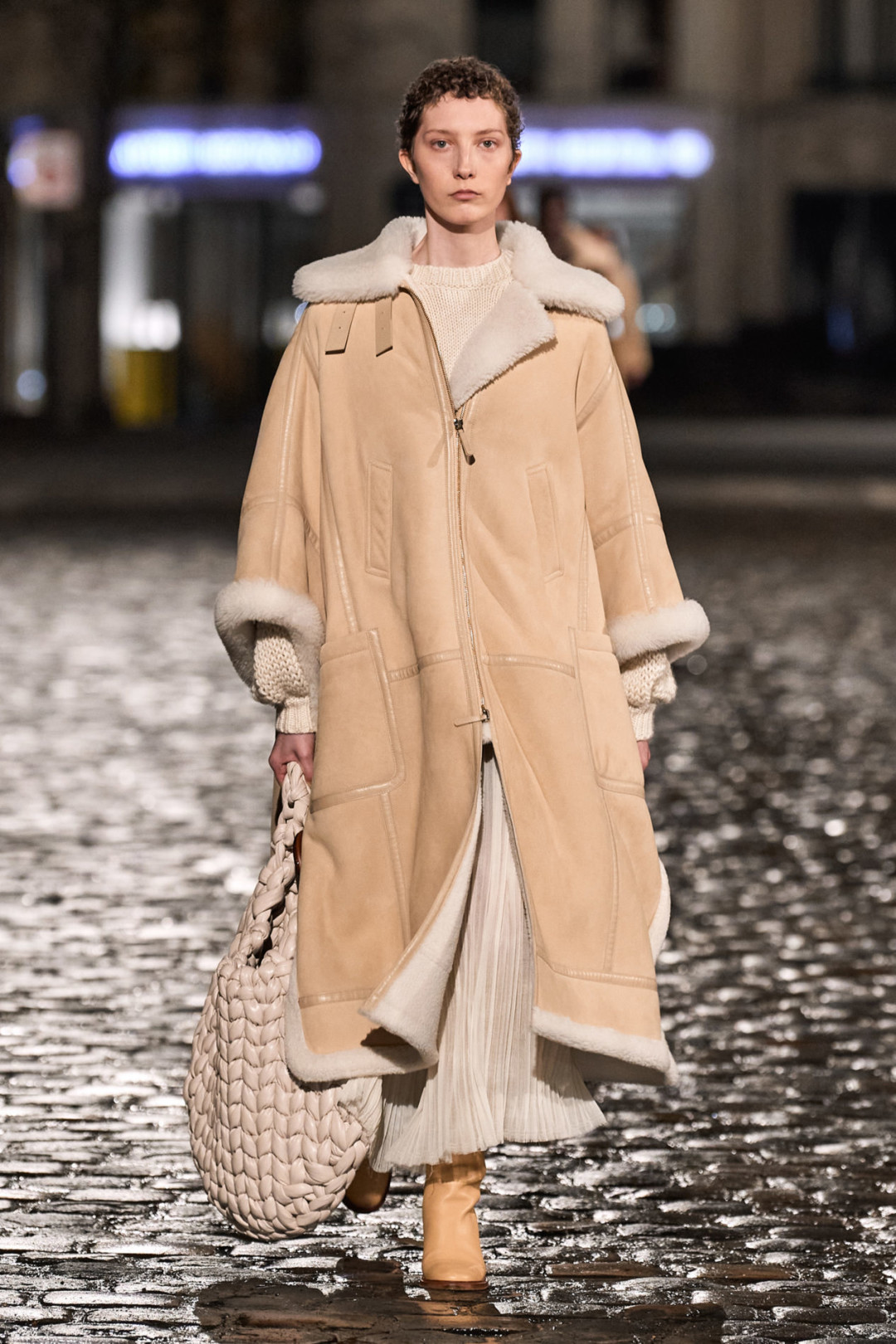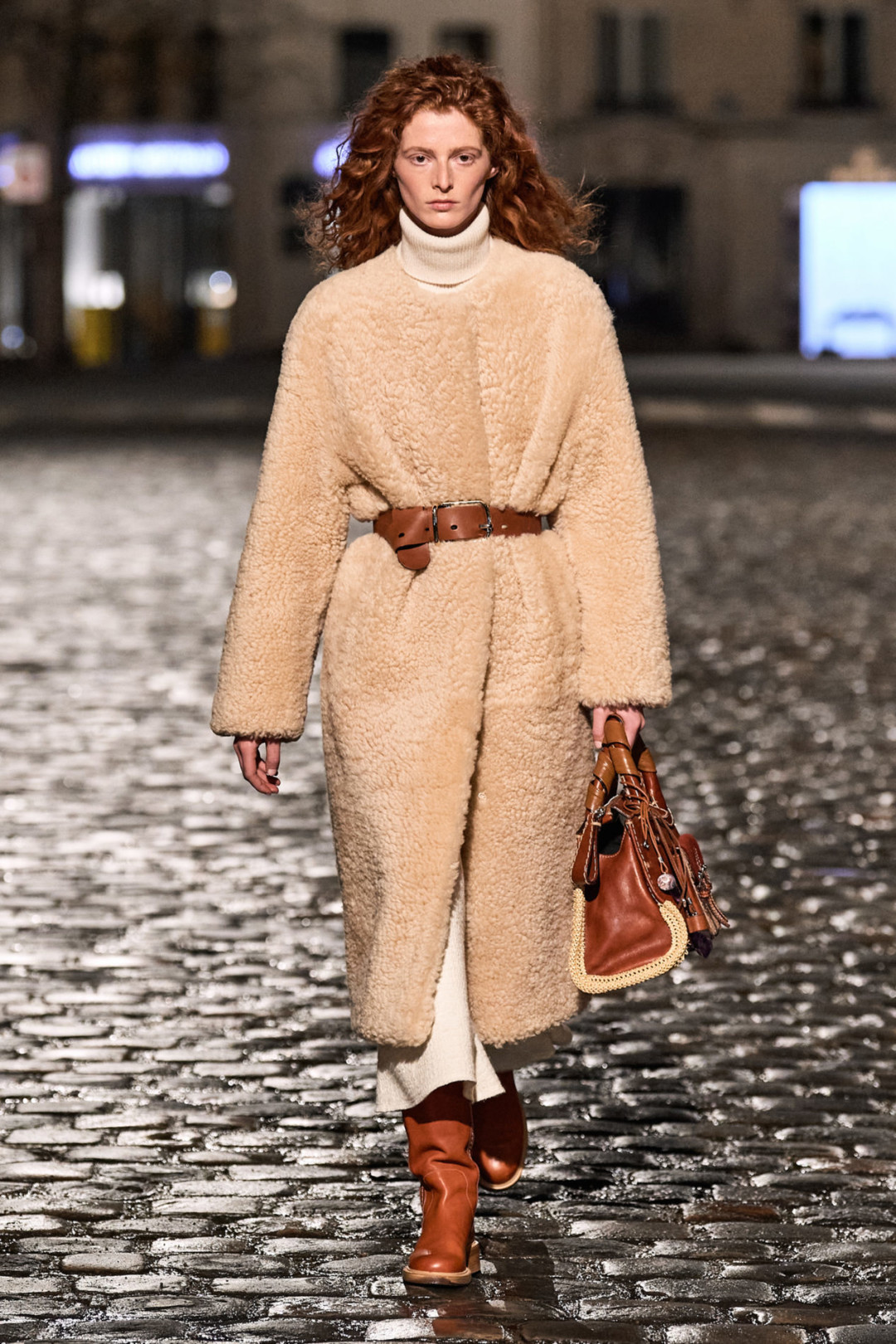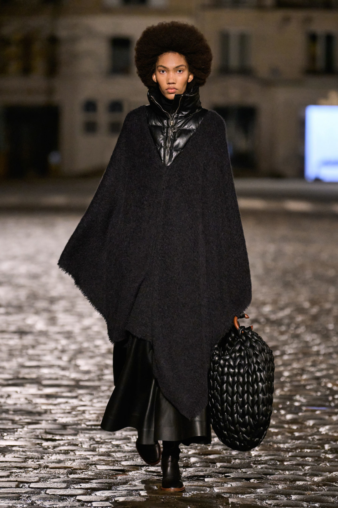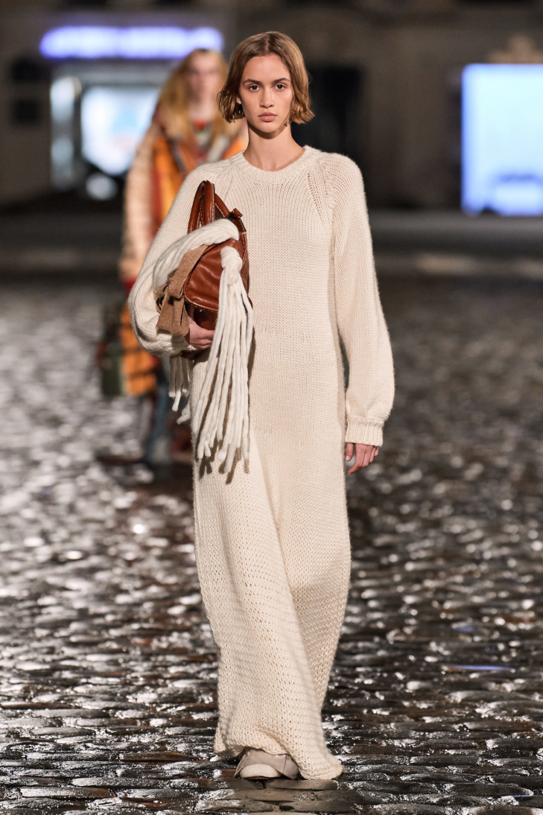 Осенне-зимняя коллекция модного дома состоит из новой версии сумки Edith, которую украсили бахрома и обрезы тканей, трикотажные платья, дубленка с отстегивающейся нижней частью, пончо с элементами пуховика и объемные куртки, созданные в технике пэчворк. Кстати, Габриэла Херст продолжила работать в sustainable-направлении (чем особо известна) и использовала при создании коллекции остатки материалов.