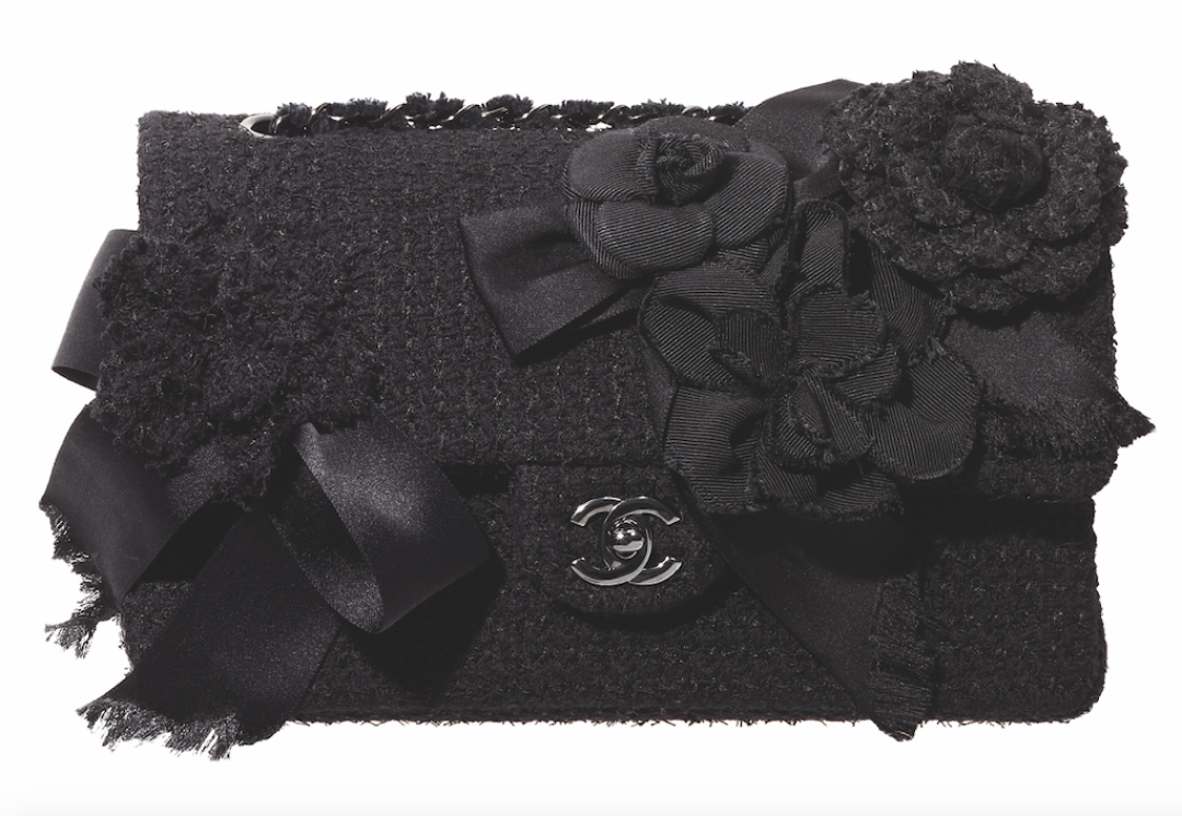 Карл Лагерфельд придумал сумку 11.12 в начале 1980-х, только-только приступив к работе в Chanel. Этот оммаж культовой модели 2.55 авторства самой Коко Шанель отличался тем, что в металлический ремешок вплели кожаную нить, а прямоугольную застежку заменили скрещенные буквы СС — уже тогда Карл оценил потенциал наступающей брендомании. Новый креативный директор Chanel Виржини Виар пошла еще дальше — и вот 11.12 выходит в твиде и бархате, вручную расшитая в кутюрном ателье дома пайетками или жемчугом. Теперь это объект коллекционирования! Лучшая модель сезона — в сияющем черном твиде с лентами-бантами и камелиями. Черными-пречерными!