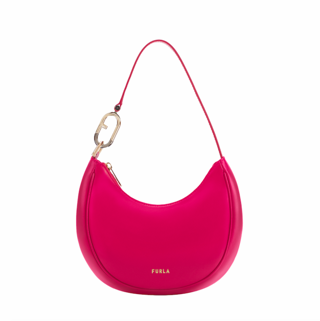 Новинка из круизной коллекеции Furla — сумка-хобо Primavera, что означает «весна», — работает лучше любого антидепрессанта. Минималистичная форма, насыщенный цвет фуксии и золотая пряжка-карабин сложились в статус it-bag. Носить ее нужно на манер моделей «багет» — на одном плече.