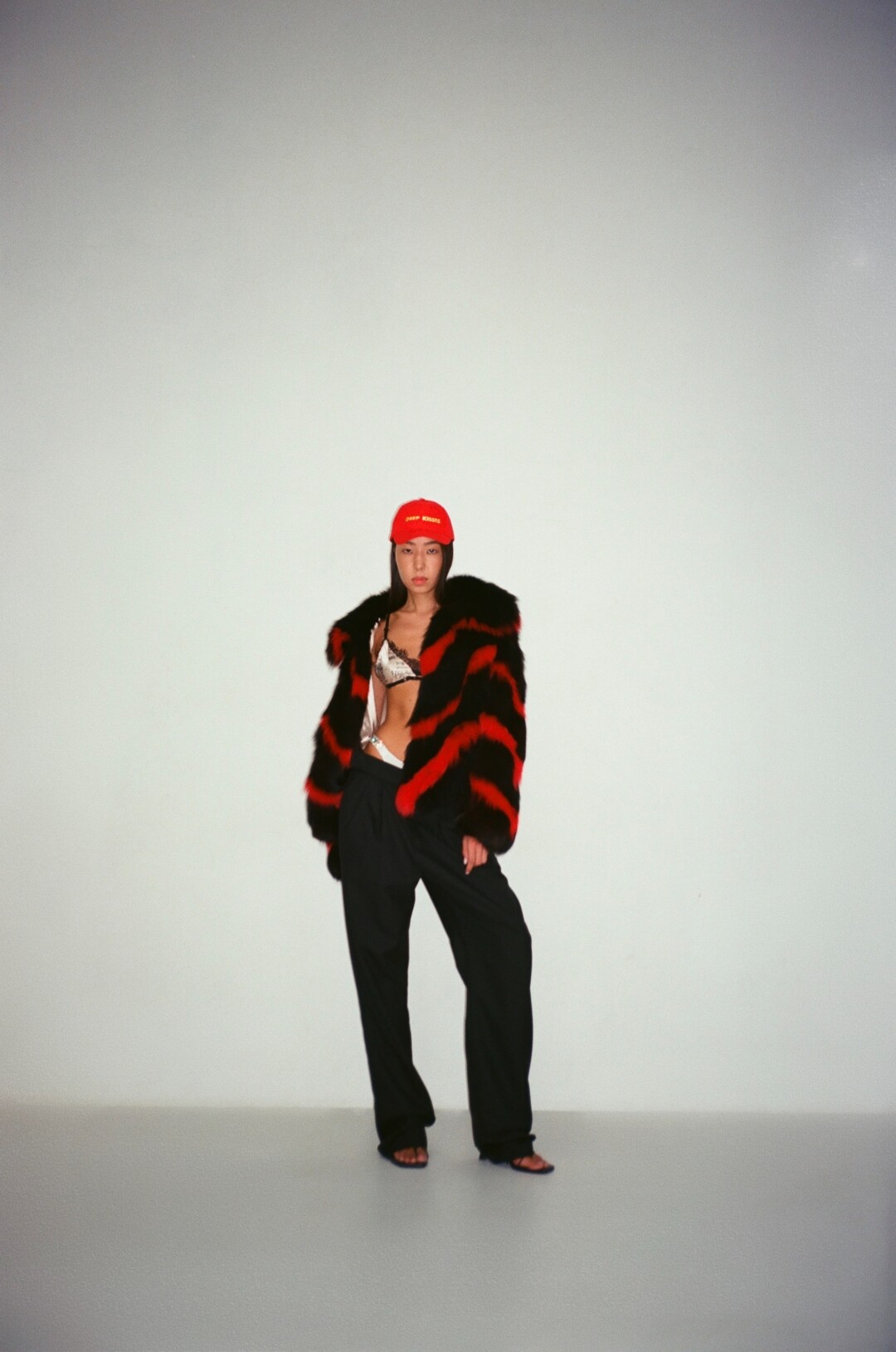 Лукбук бренда получился отчасти ностальгическим — он отсылает к моде нулевых и эпохе гламура, когда натуральный мех был особенно актуален. Среди маркеров 2000-х диадема, дань популярности конкурсам красоты, Playboy, как символ рассцвета гламурной сексуальности, а также низкая посадка брюк и выглядывающие из-под них стринги со стразами.