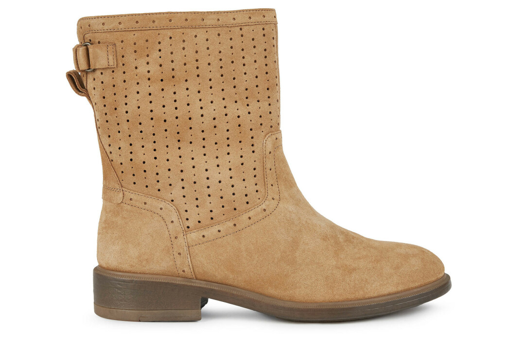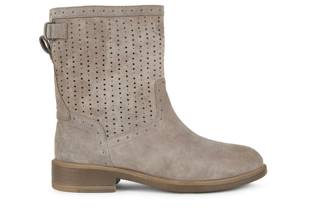 Хэдлайнерами весеннего сезона от Geox стали легкие полусапожки и ботильоны из замши, которые дизайнеры бренда предлагают носить со всем: платьями, юбками, трикотажными комплектами и джинсами. Обувь отличается устойчивым каблуком, сдержанным декором и цветовой палитрой — это оттенки сафари: песочный и серо-бежевый.