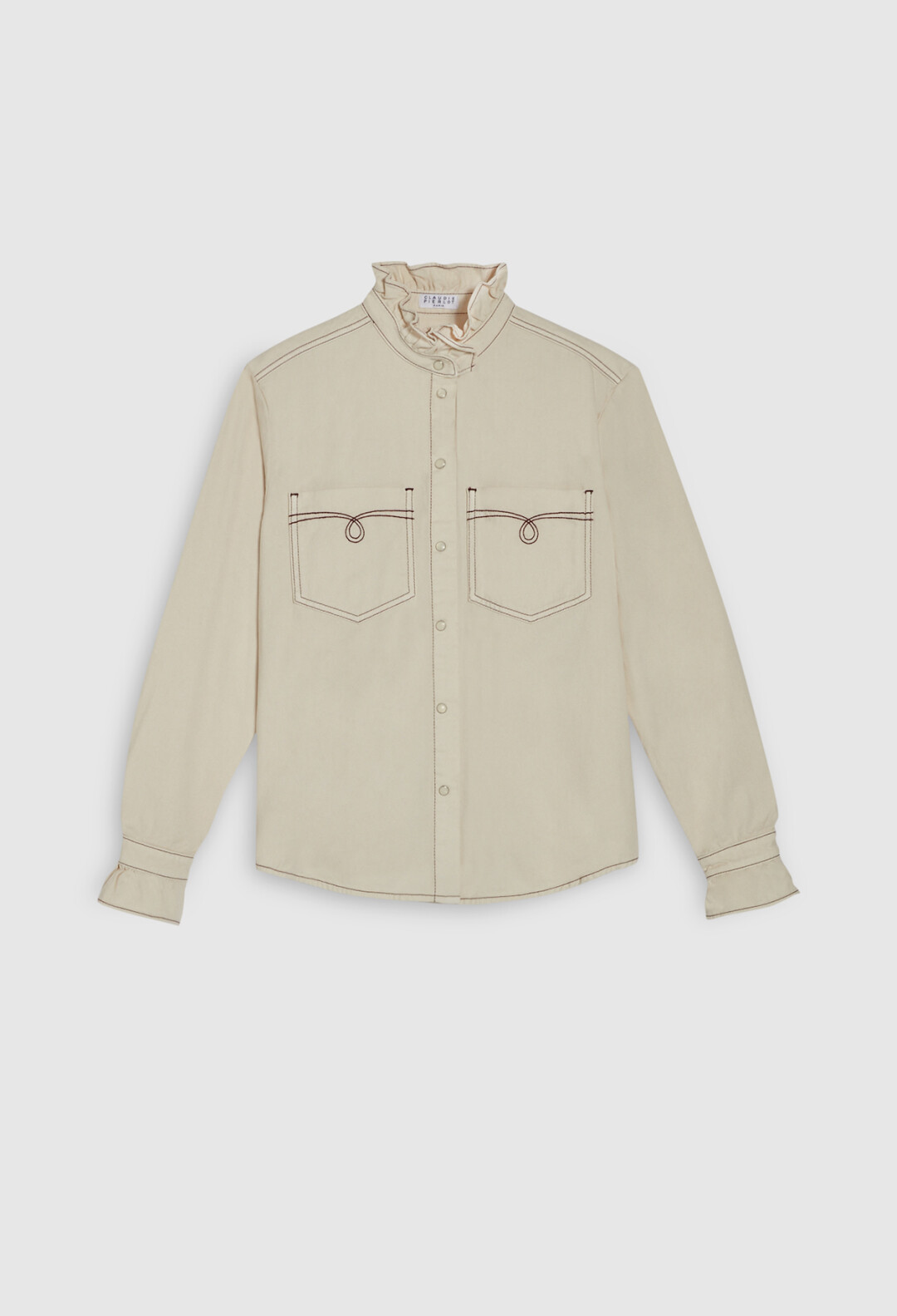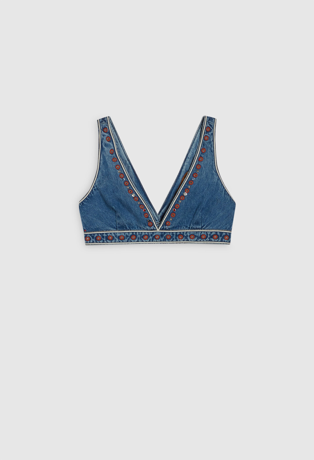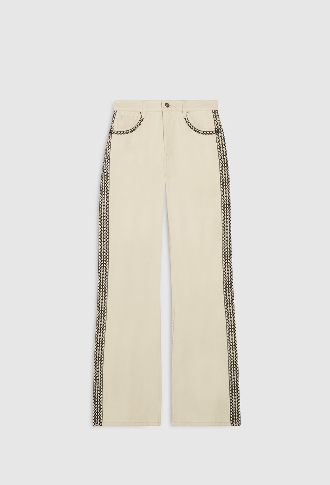 В летнюю коллекцию Claudie Pierlot вошли вещи с графичными вышивками, платье на молнии белого оттенка, будто выгоревшего на солнце, такого же цвета брюки и жакет, джинсовые и вязаные комплекты, мини-платья, а также платье длины макси с запахом и рукавами-фонариками. Дополнять образы дизайнеры бренда советуют удобными сандалиями и плетеными панамами.