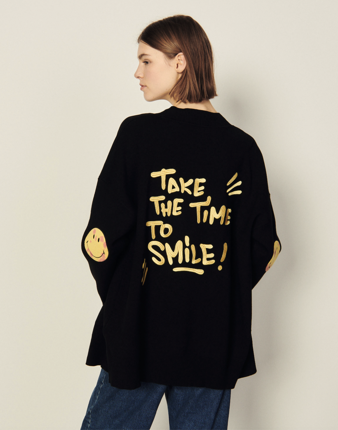 Улыбайтесь чаще, и чаща улыбнется вам: легендарному желтому «смайлу» исполняется пятьдесят лет. Этот символ придумал французский журналист Франклин Лауфрани, он маркировал им так необходимые нам сегодня хорошие новости. И они есть — Sandro выпустили лимитированную коллекцию с культовым принтом и жизнеутверждающими слоганами.
