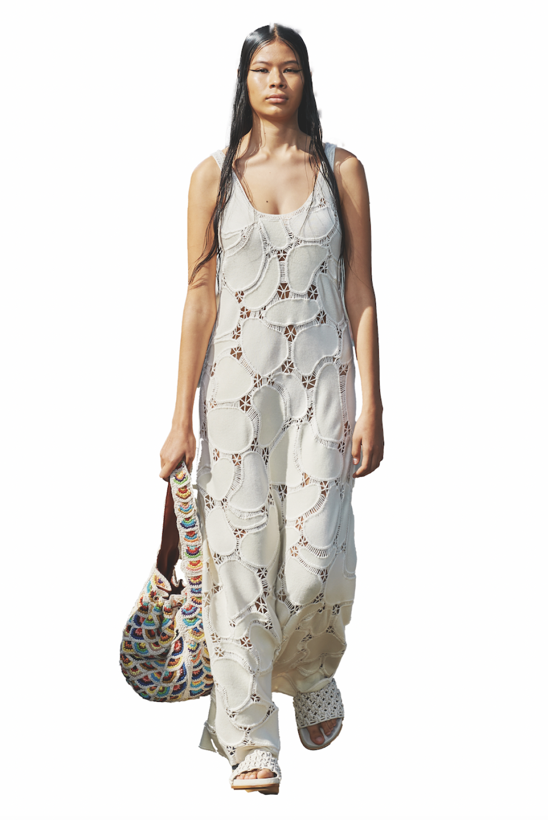 Коллекция Chloe вся по гиперактуальную тенденцию ремесленных техник: в ней найдутся и пэчворк, и кружево, и плетение, и вязка — многие вещи выполнены вручную независимыми мастерами. Помимо этого креативный директор Габриэла Херст щедро использует в деталях полудрагоценные камни: мы выбираем все, что с серым агатом, он обещает устойчивость в эпоху перемен.