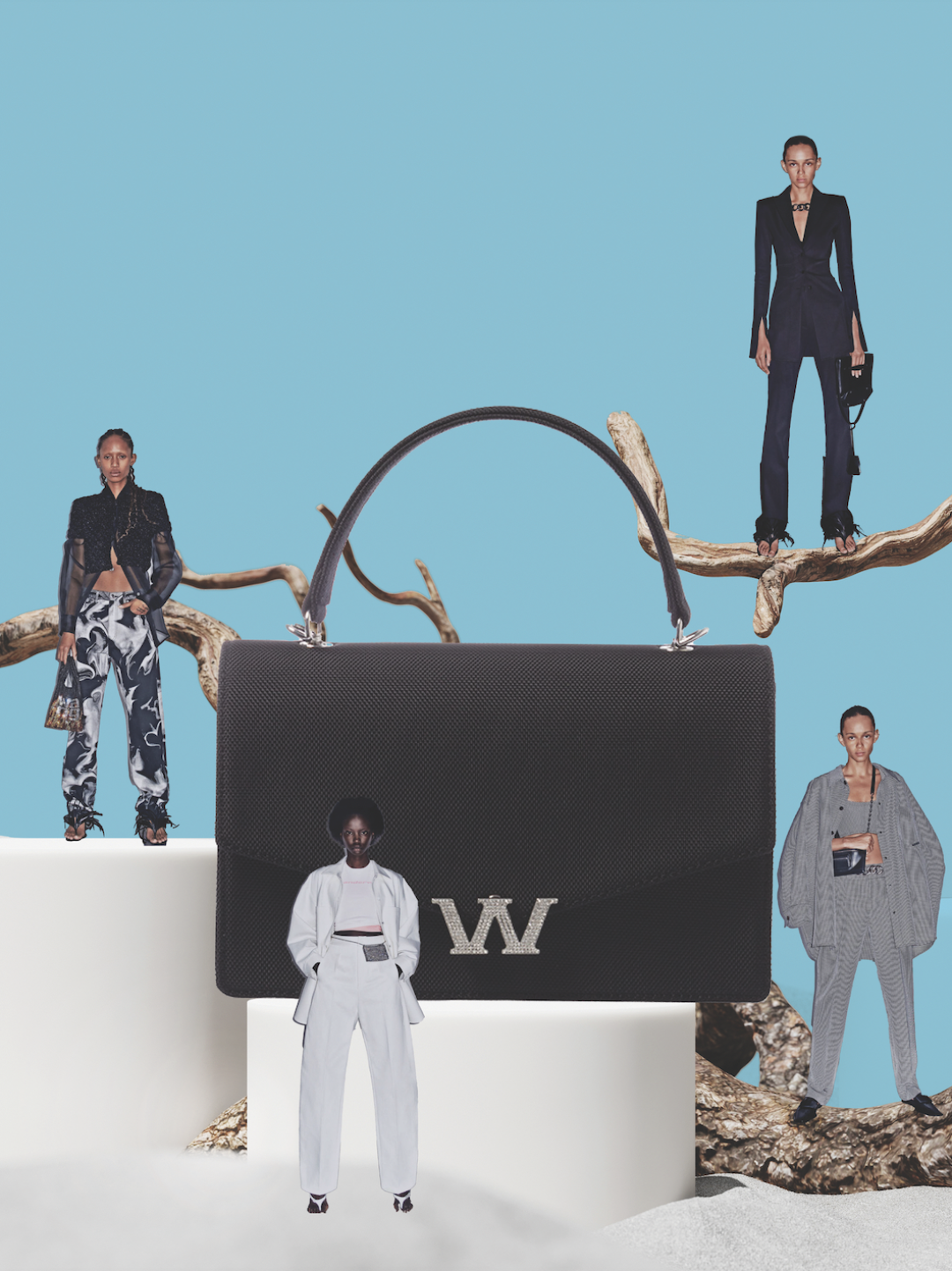 Новая сумка W Legacy из фактурного нейлона с отделкой из кожи стала воплощением выражения «ничего лишнего» — строгая прямоугольная форма, лаконичная ручка и пряжка с инициалом W, считайте, что это автограф дизайнера Александра Вэнга. Выглядит миниатюрно, но во внутренний карман и слоты для карт (снова актуальную деталь) поместится все.