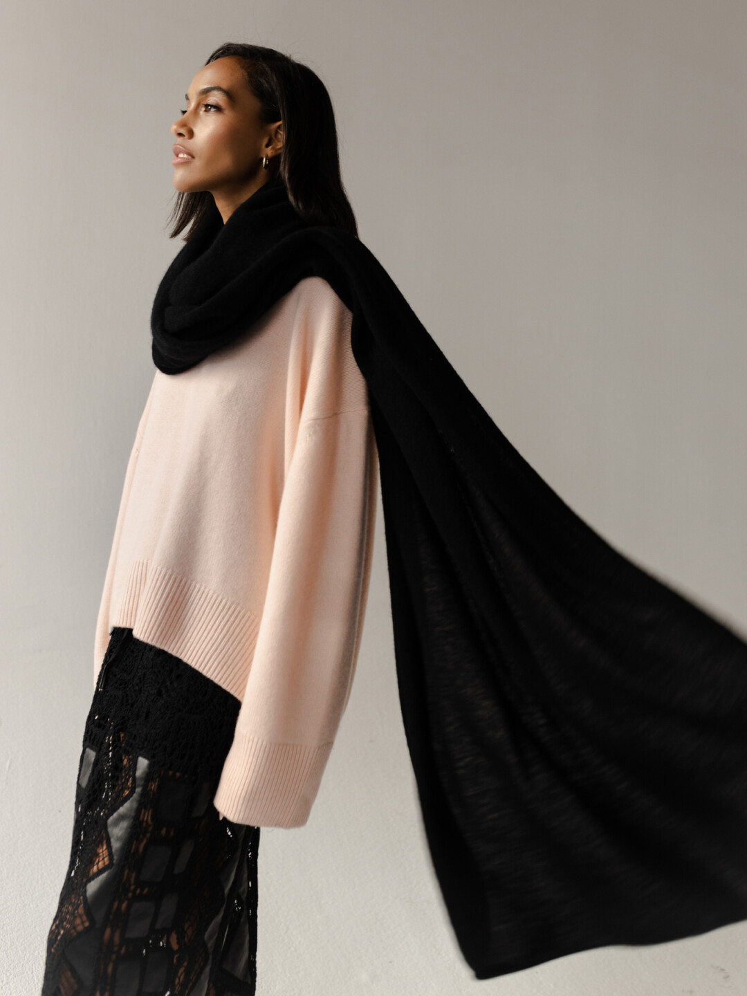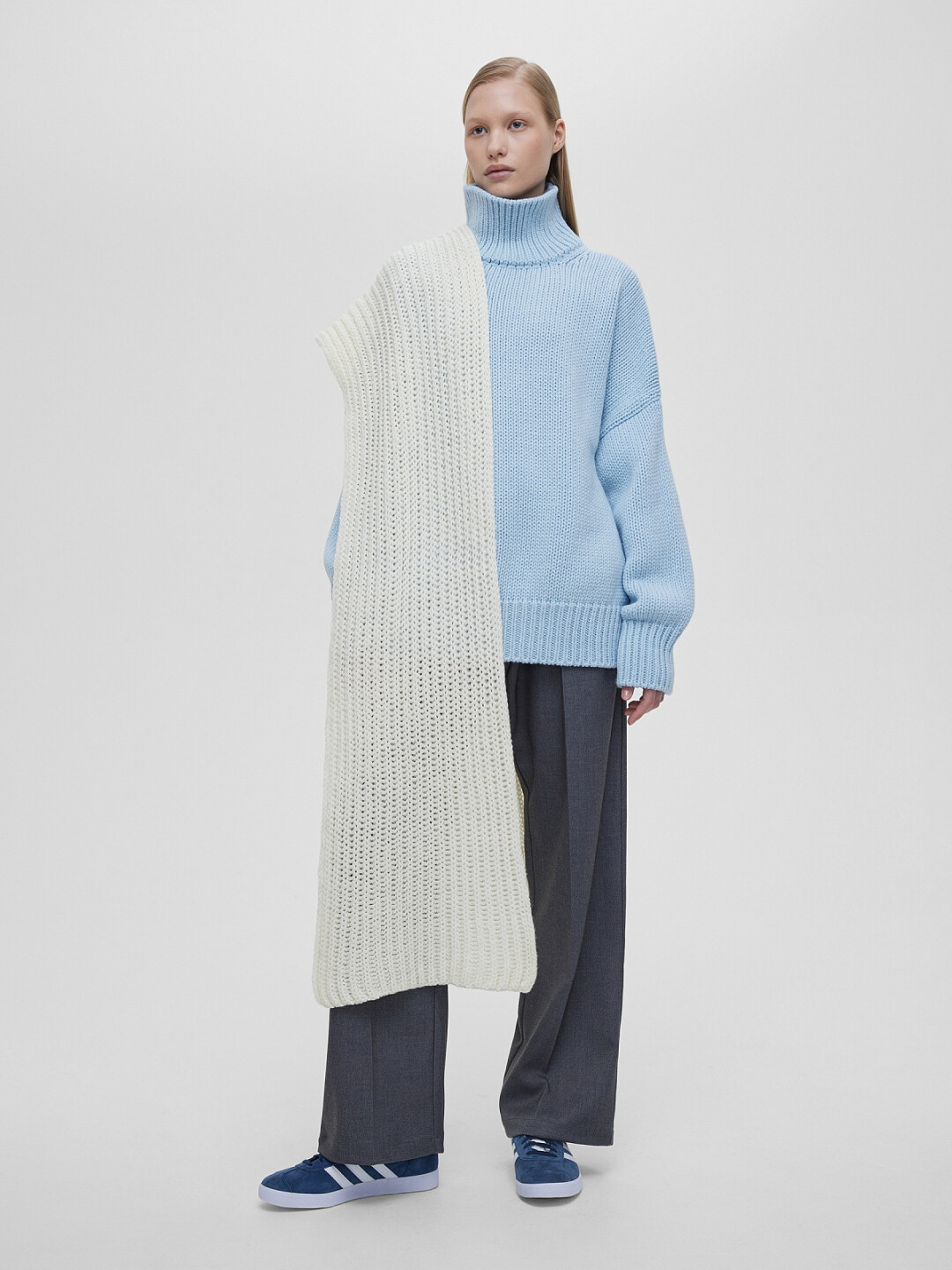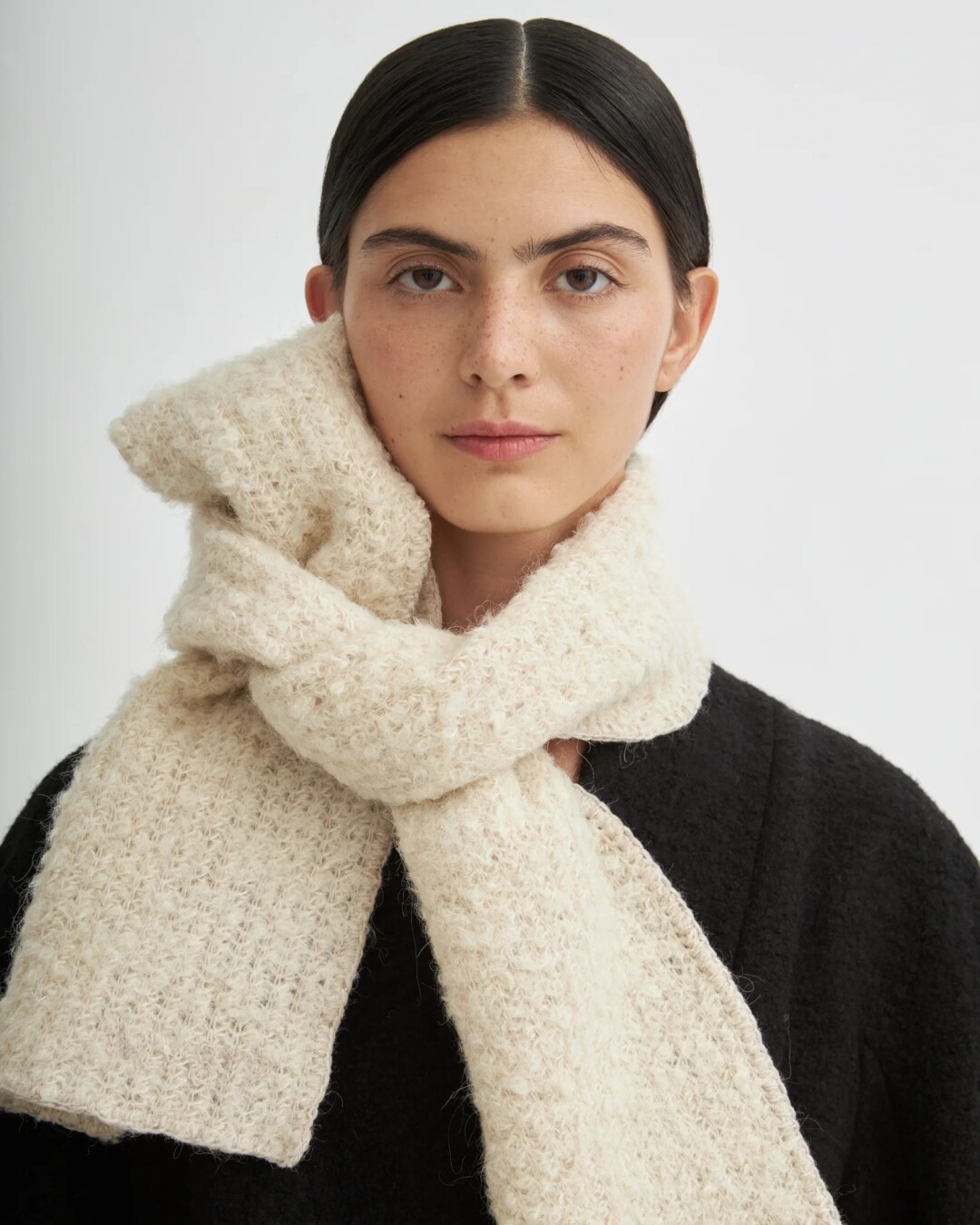 Актуальный шарф должен быть примерно вдвое длиннее вас и едва ли не волочиться шлейфом: в этом есть шик, драма и тепловая завеса. Хорошо, если при этом он будет фактурно взлохмачен: в искусстве художественного укутывания такому нет равных. Альтернативный вариант – пуховый шарф (вдруг вы – любитель долгих ноябрьских прогулок), против которого ни у ветра, ни у снега, ни даже у ледяного дождя нет ни единого шанса. Если вам снова трудно выбрать, то есть шарф-эмпат Vivetta: он вас обнимет (хотя он просто шарф) и подержит за руку (или за обе).
